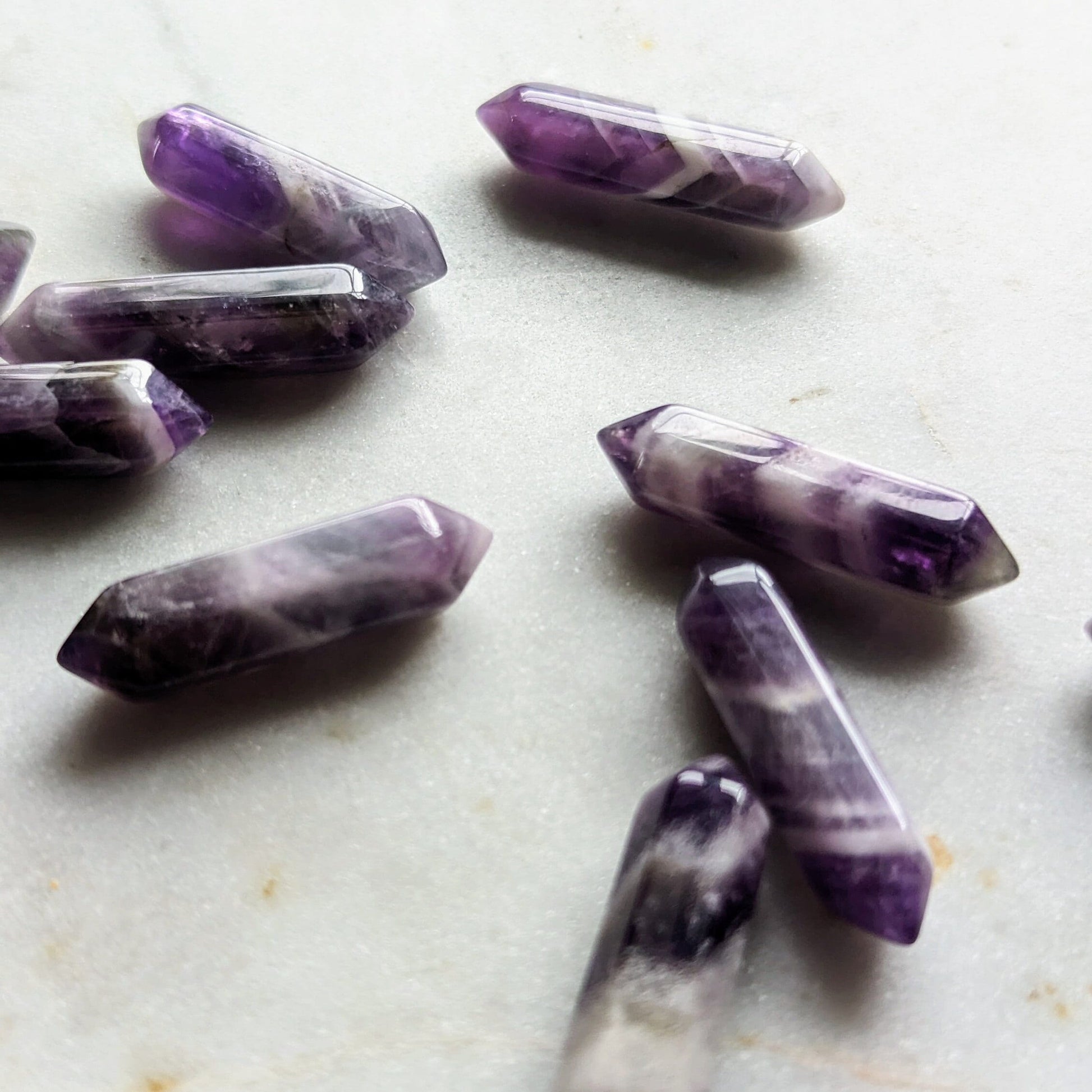 L'améthyste est connue pour favoriser l'équilibre physique, mental et émotionnel et renforcer l'intuition. Ils procurent une sensation de bien-être et de paix intérieure. Associée au chakra du front, l'améthyste est également la pierre de naissance du signe du zodiaque Verseau et de tout le mois de février.