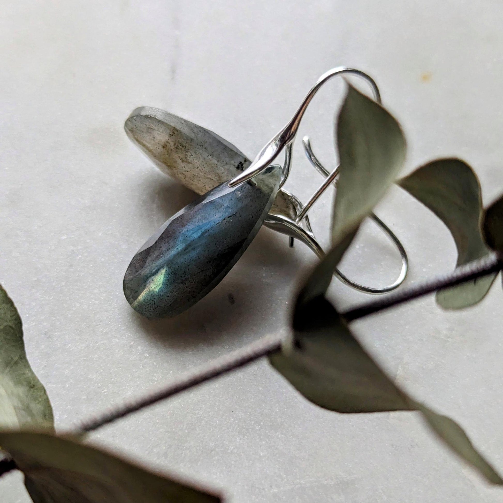Boucles d'oreilles en labradorite vert-bleu avec crochets en argent 925