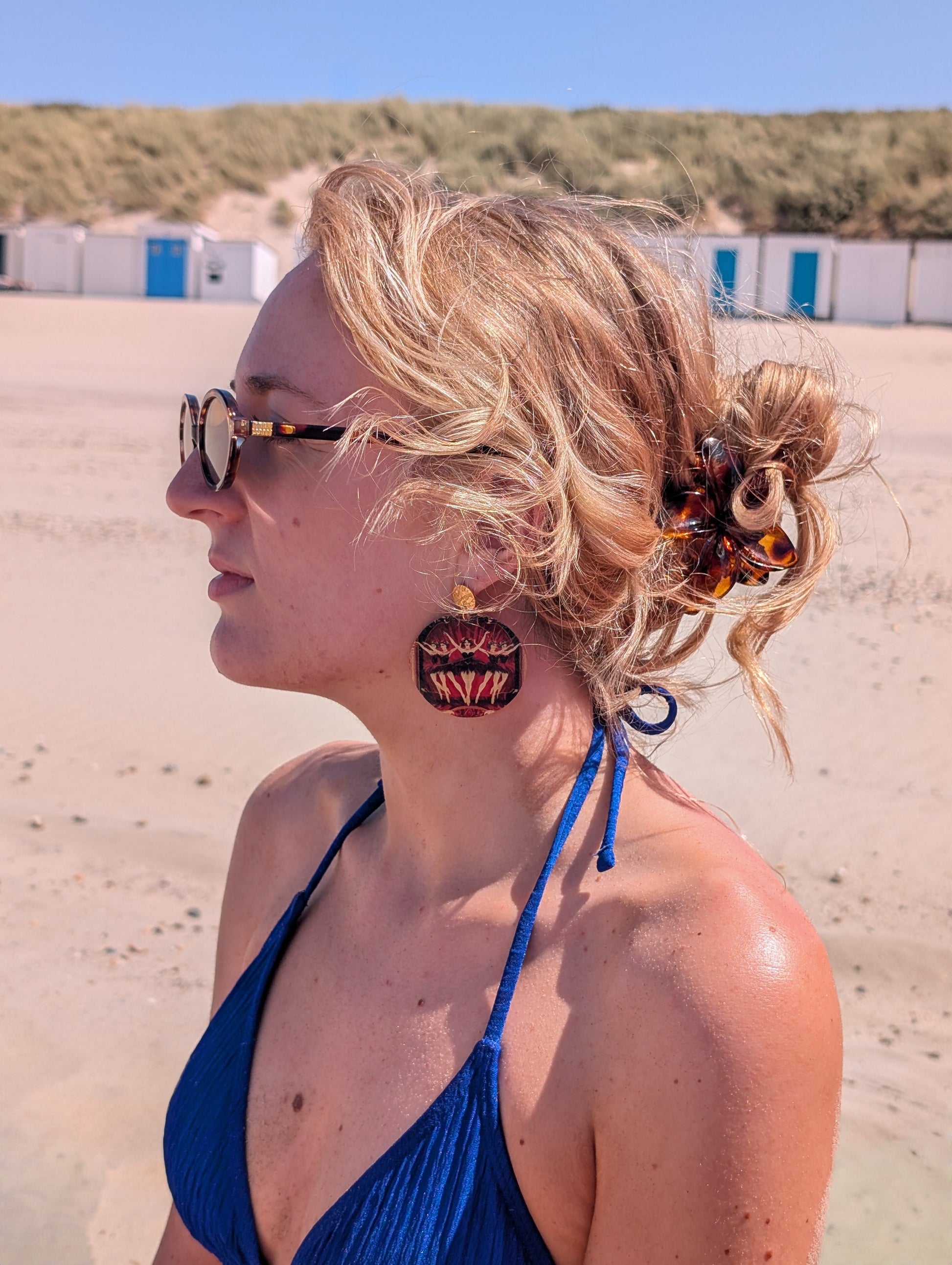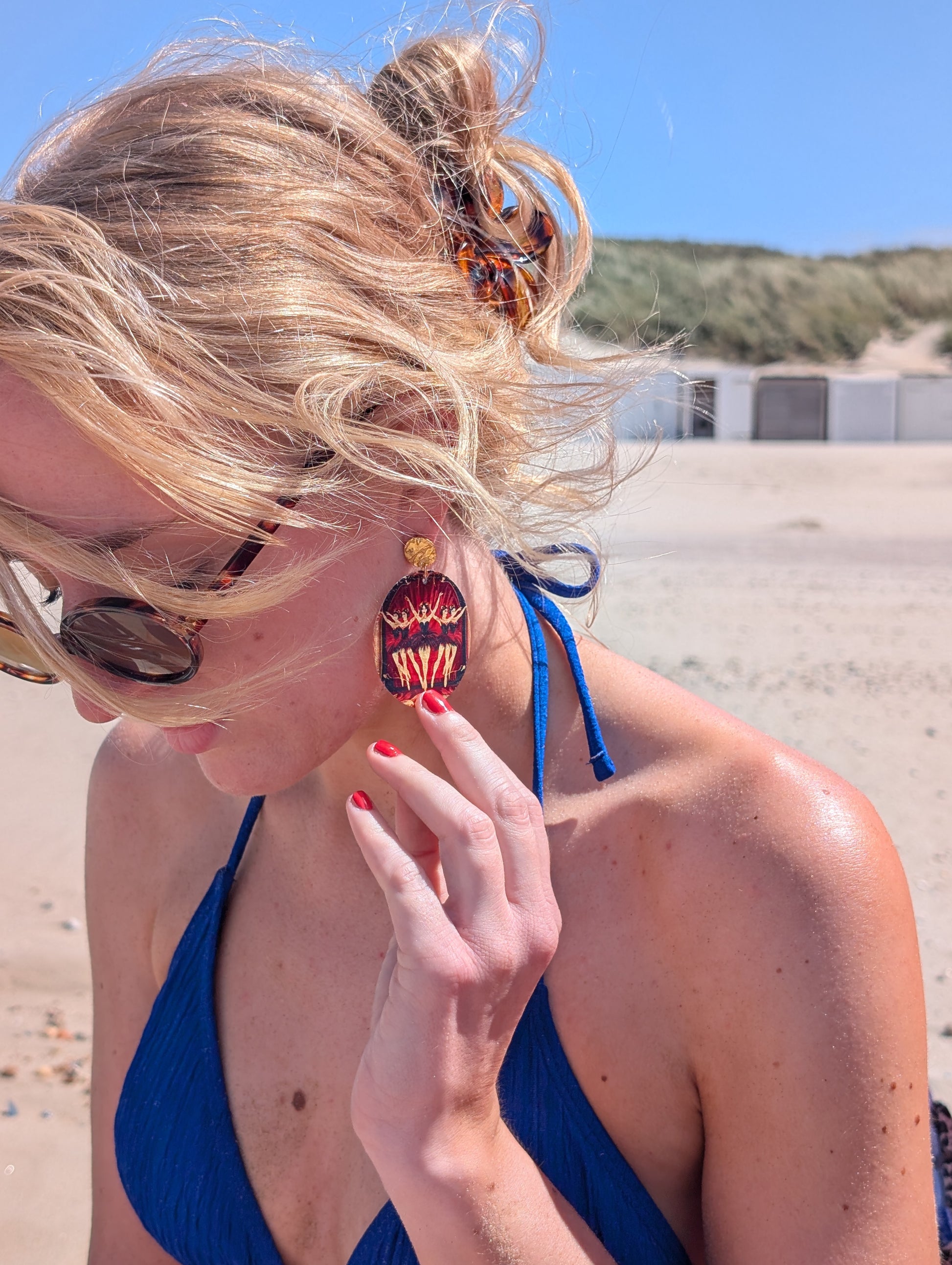 Jeder dieser Ohrstecker ist eine kleine, tragbare Leinwand. Der warm glänzende, goldfarbene Stecker aus Edelstahl bildet dazu einen modernen, eleganten Kontrast. Das Material ist nicht nur für seine Langlebigkeit bekannt, sondern auch für sein angenehmes und hautfreundliches Tragegefühl.