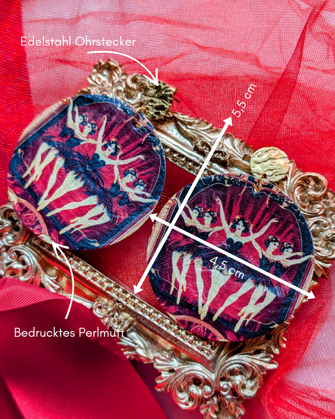 Ein flüchtiger Augenblick voller Anmut, eingefangen auf schimmerndem Perlmutt. Diese Ohrstecker sind eine Hommage an die Eleganz des Balletts und den nostalgischen Charme vergangener Tage.