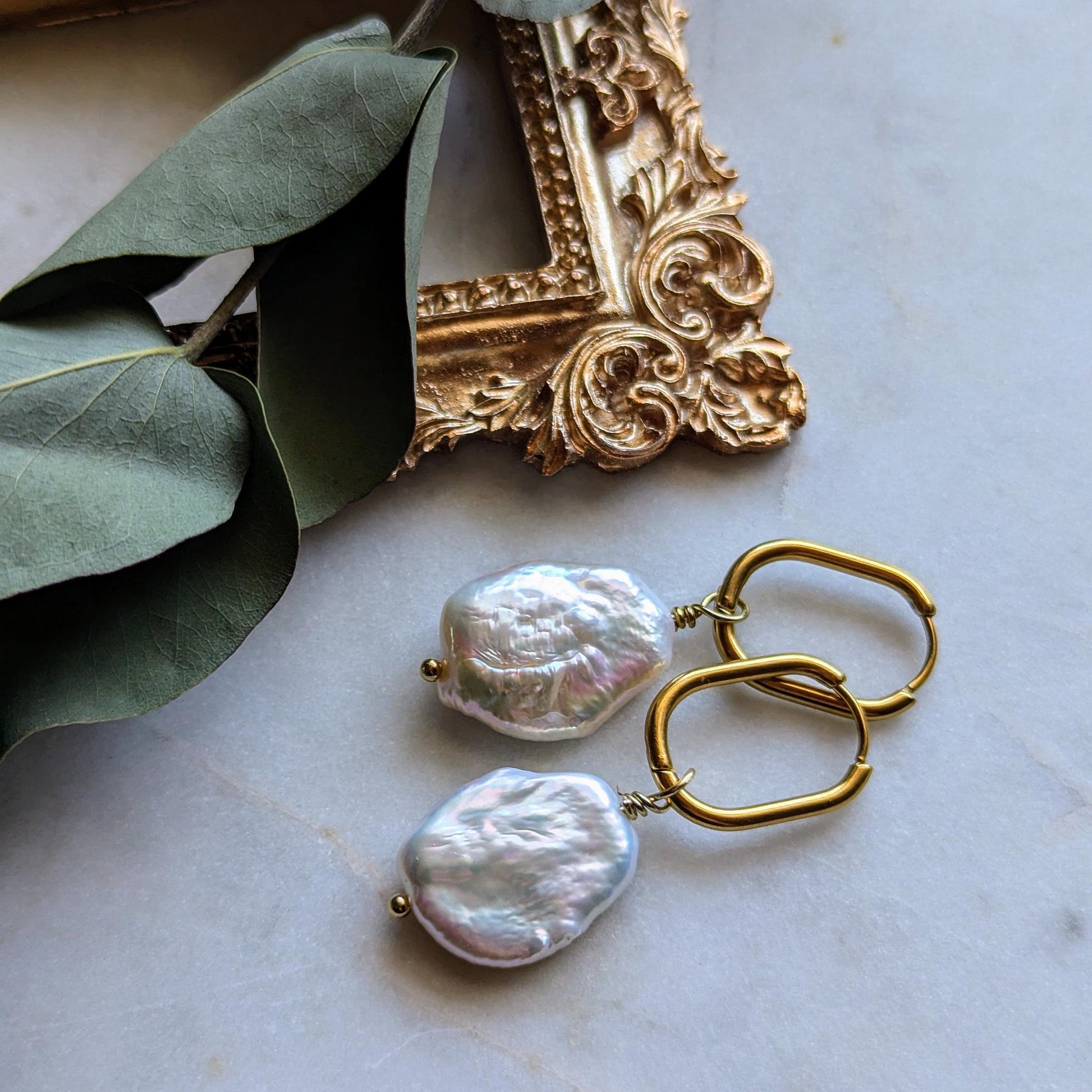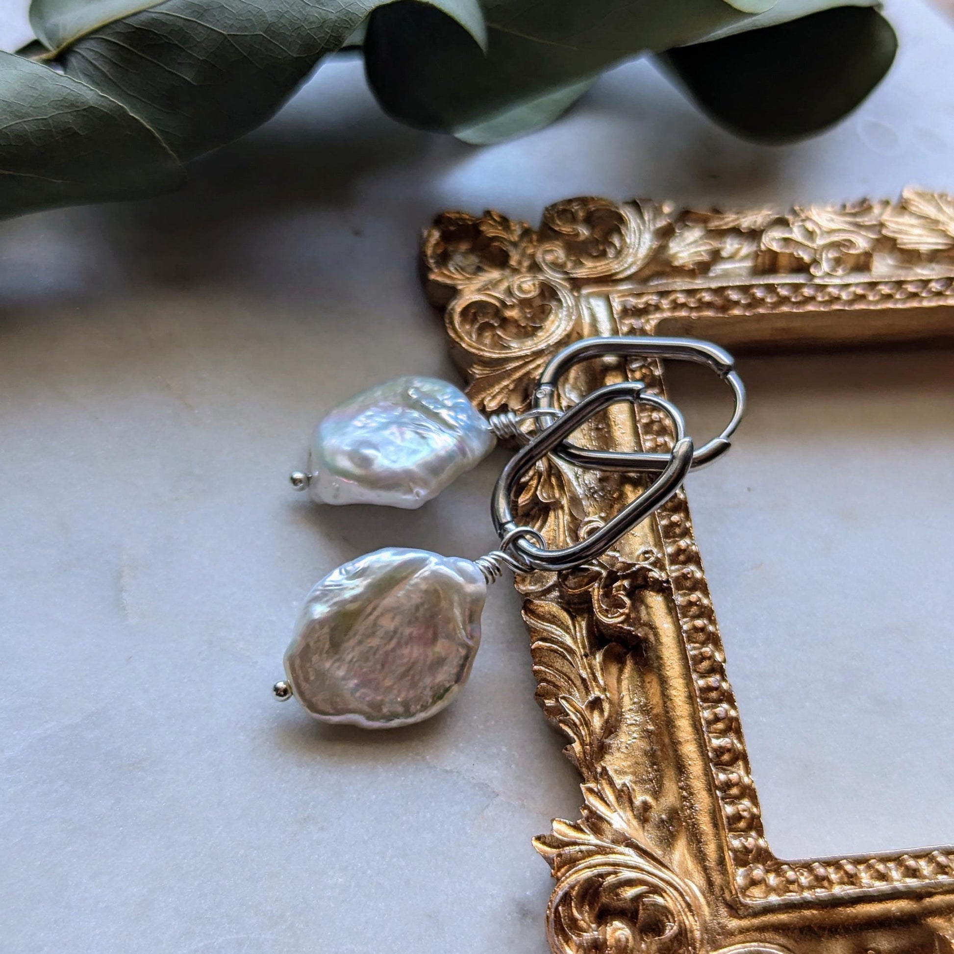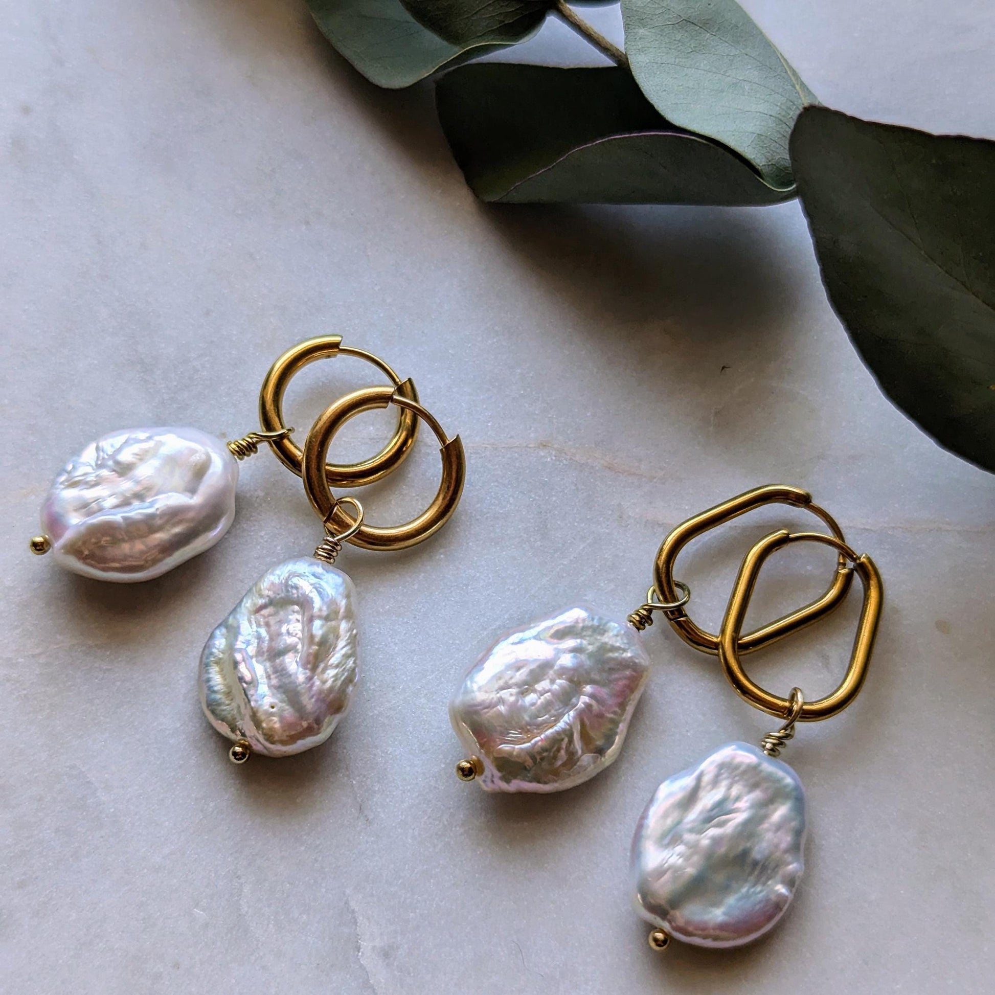Creolen "Baroque Grandeur" – Edelstahl mit Großen Barockperlen