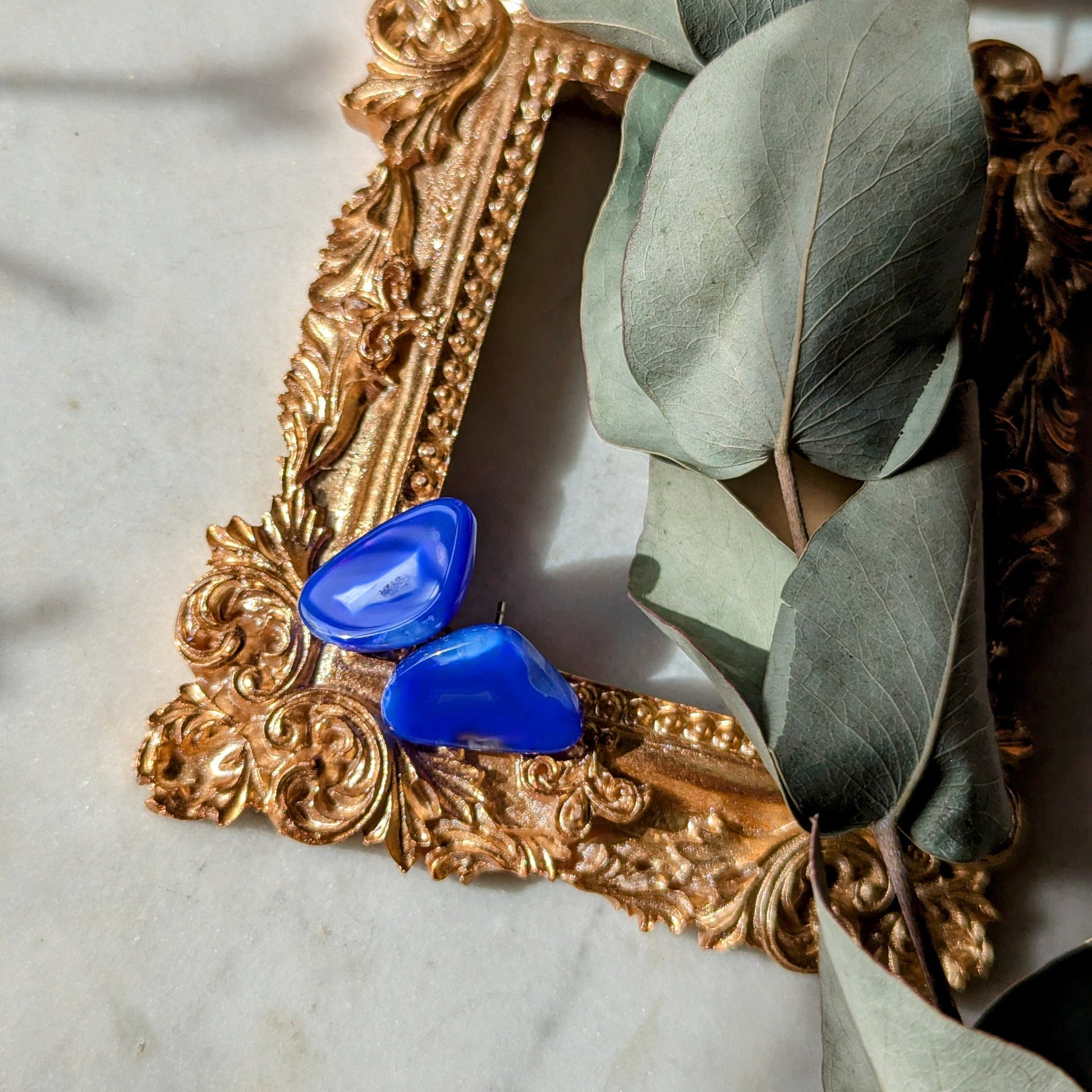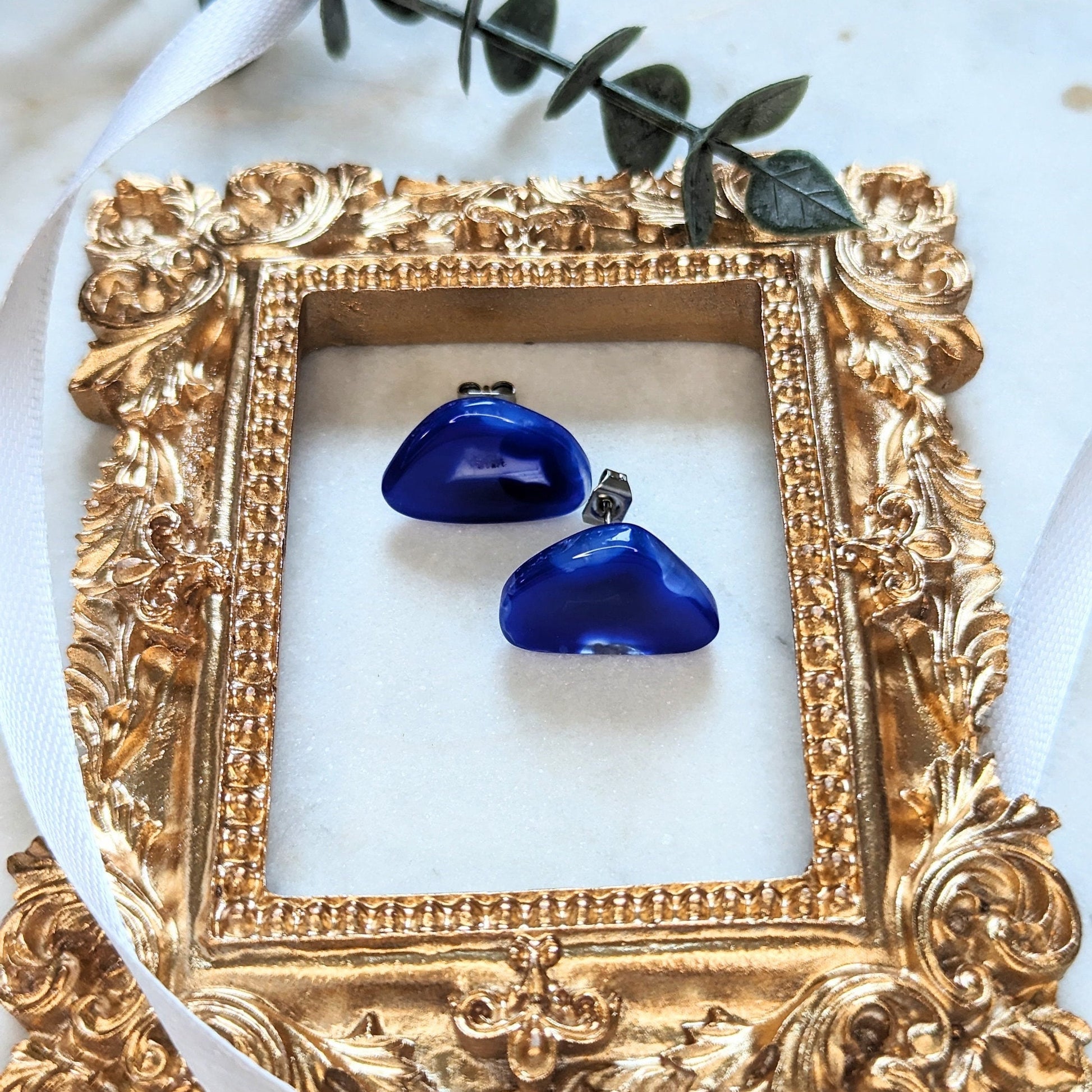 Setz ein Statement mit unseren exklusiven Ohrsteckern "Ocean Achat" – ein wahres Unikat für jede Schmuckliebhaberin! Die intensiven Blautöne des Achats verleihen diesen Ohrringen eine faszinierende Tiefe, während ihre leicht dreieckige Form sie zu einem stilvollen Blickfang macht. Jedes Paar ist einzigartig in Maserung und Farbnuancen.