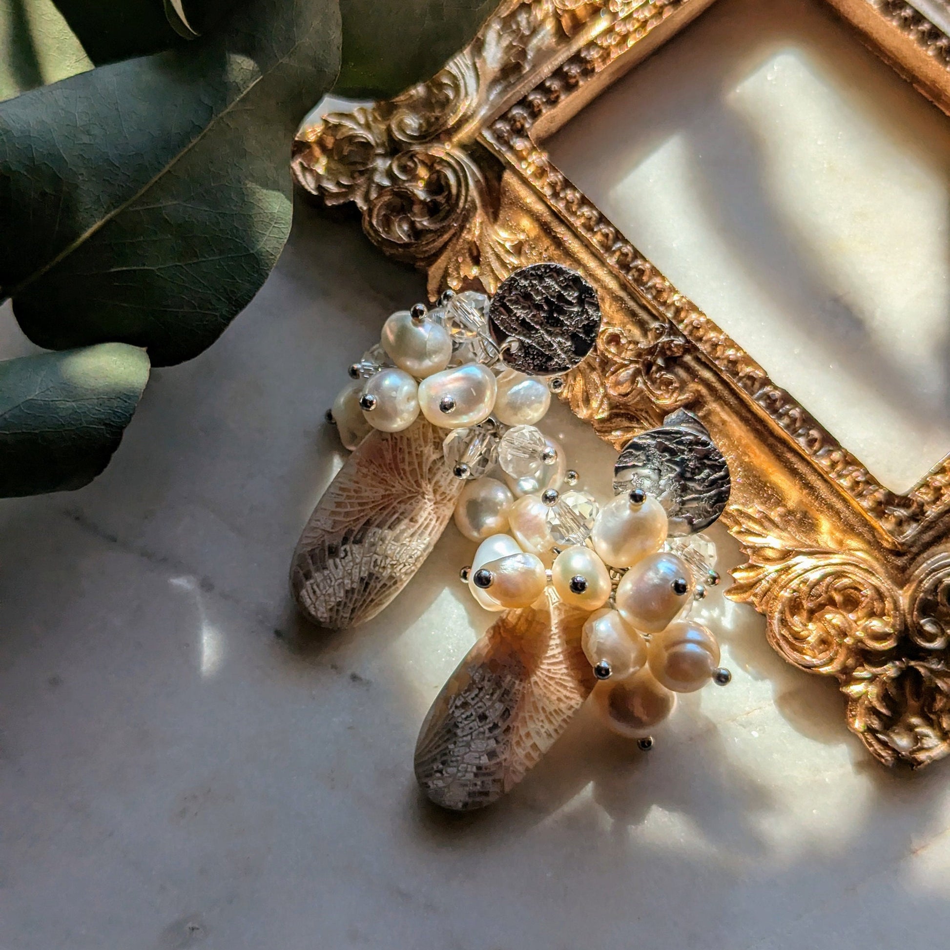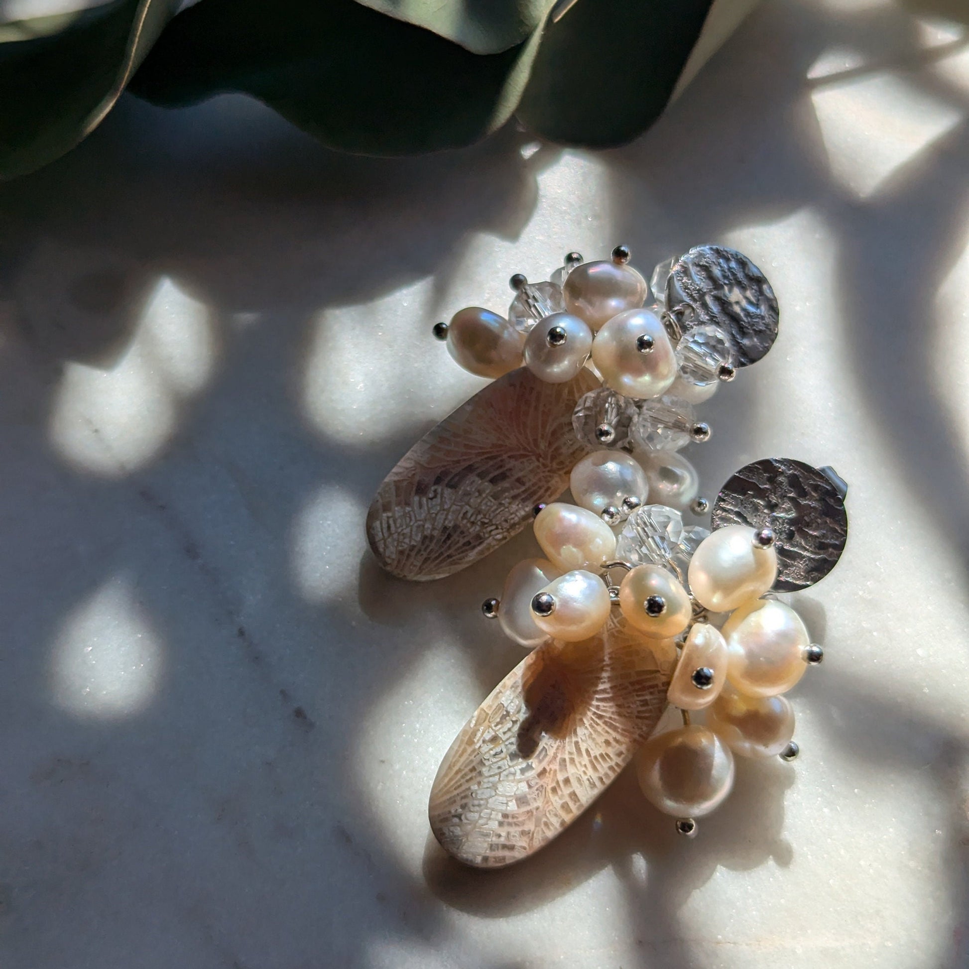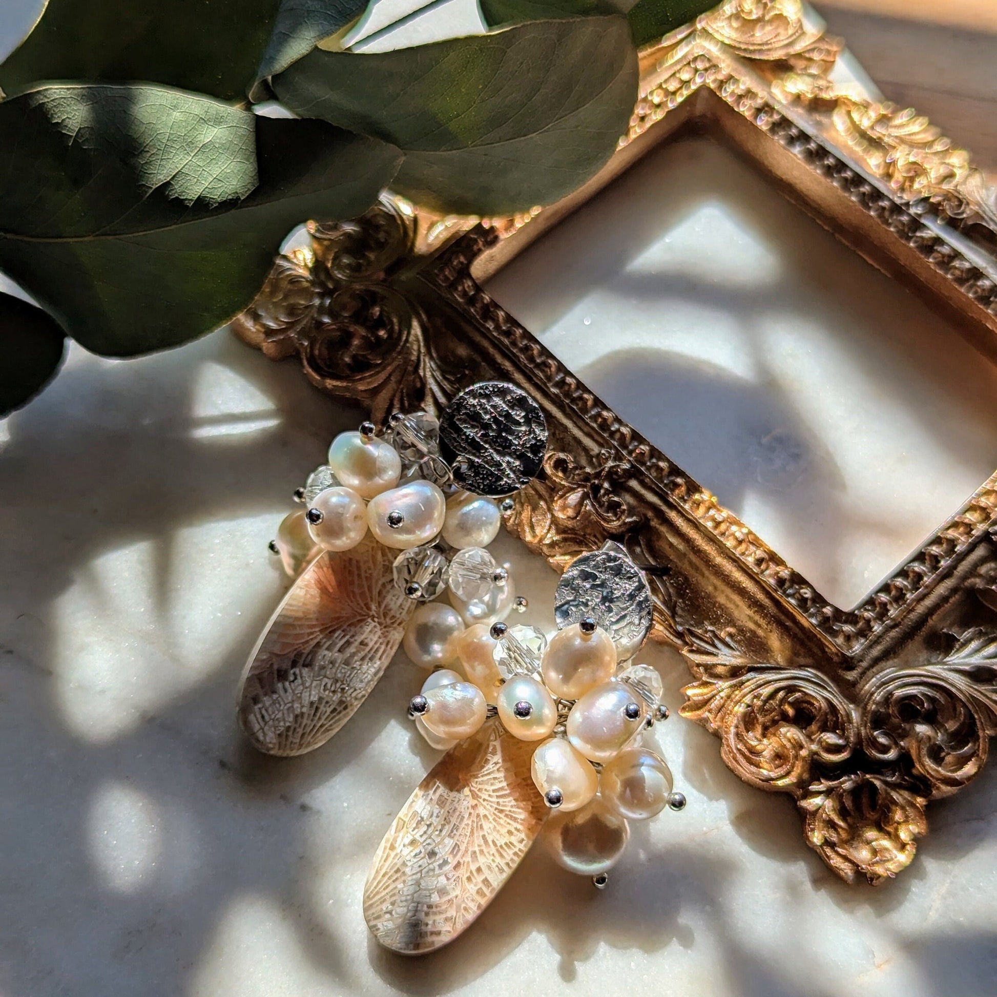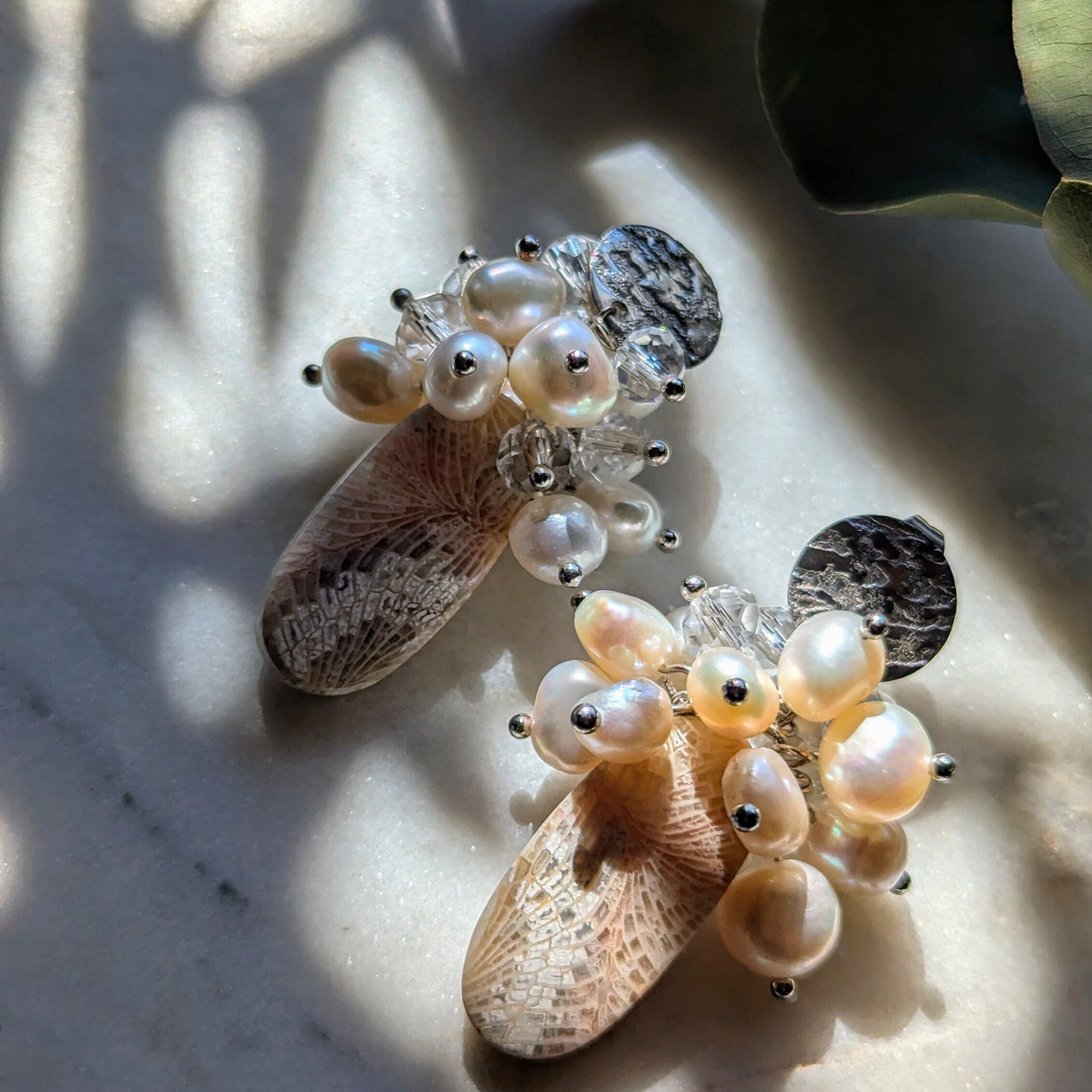 Ohrstecker "Ancient Bloom" – Fossile Koralle & Perlen (Einzelstück)