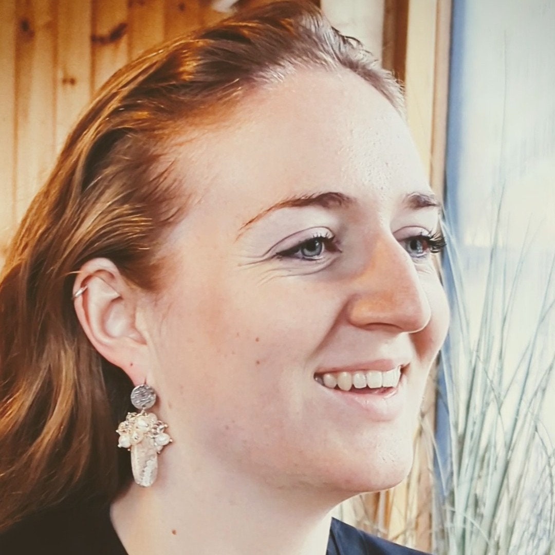 Entdecke die einzigartigen Ohrstecker "Ancient Bloom" – ein absolutes Einzelstück, das die Schönheit vergangener Zeiten einfängt. Diese faszinierenden Ohrstecker präsentieren einen kunstvollen Cluster aus schimmernden Süßwasser- und Glasperlen, kombiniert mit echten fossilen Korallen. Jedes Korallenfossil erzählt eine Millionen Jahre alte Geschichte, und seine einzigartige Maserung macht dieses Schmuckstück absolut irreproduzierbar.