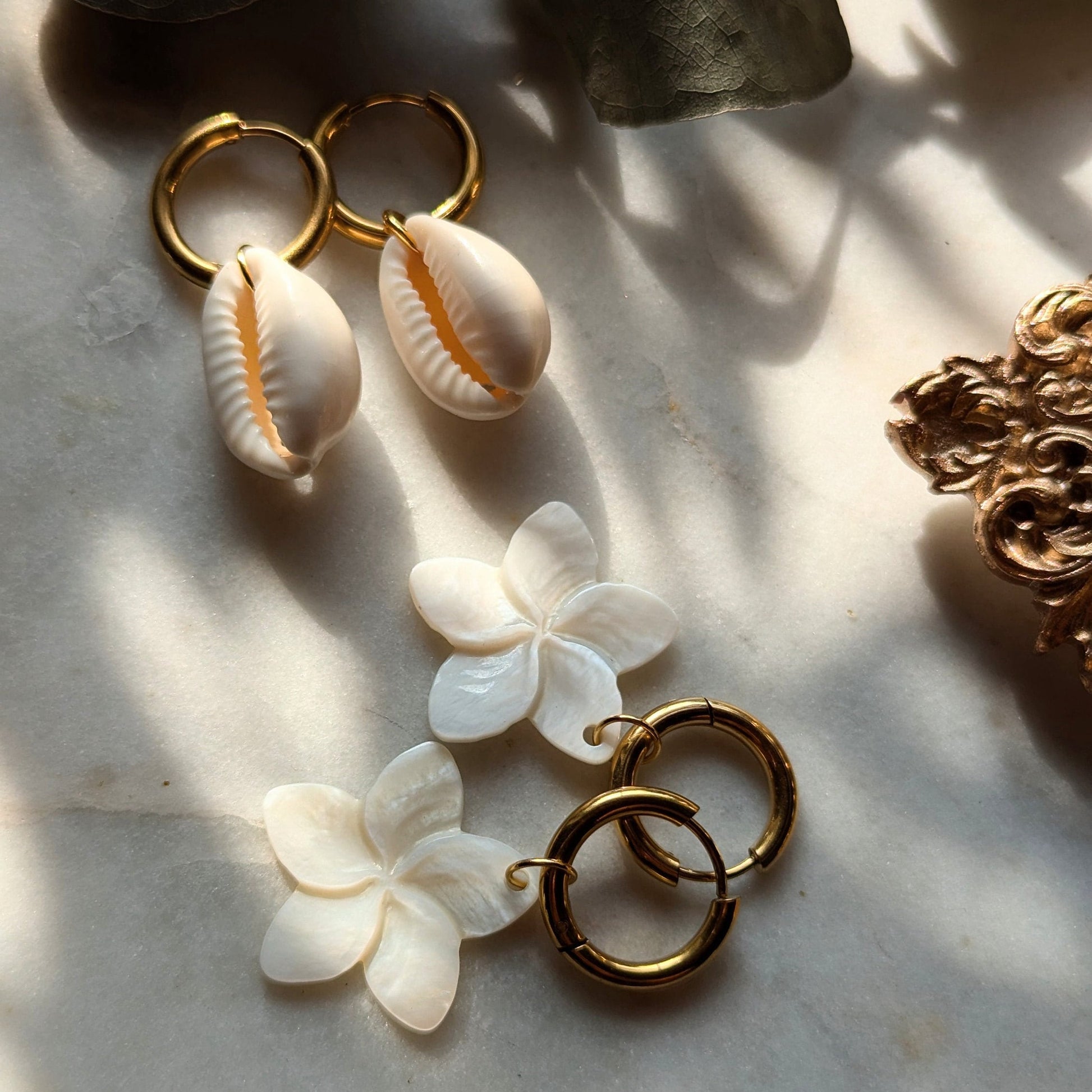 Tauche ein in das Gefühl von Sonne, Strand und unbeschwerter Lebensfreude mit unseren Hawaii Glow Creolen. Diese bezaubernden Edelstahl Creolen sind mit einer wunderschön geschnitzten Blume aus echtem, schimmerndem Perlmutt verziert, die sofort die Essenz des Sommers einfängt. Sie sind sommerlich, zart und doch unübersehbar – ein strahlender Akzent, der deine Persönlichkeit zum Leuchten bringt.