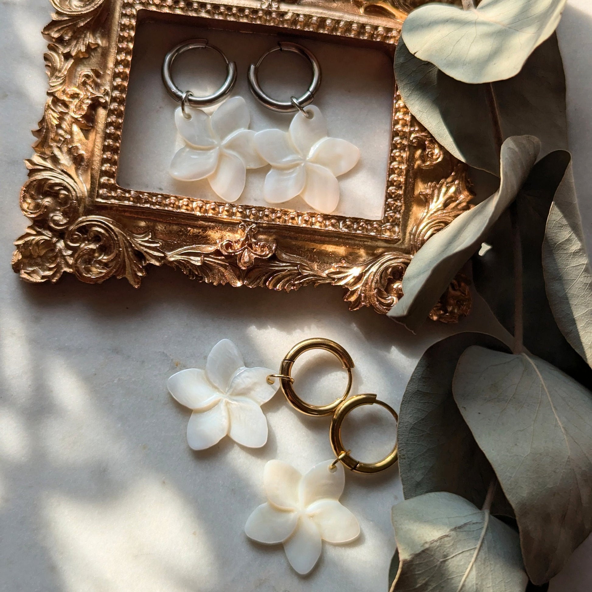 Dank ihrer wasserfesten Eigenschaften bringen diese Hawaii Ohrringe das Lebensgefühl eines endlosen Sommertages mit, egal zu welcher Jahreszeit. Vergiss den Alltagsstress und lass dich vom sanften Glanz des Perlmutts und dem tropischen Flair inspirieren, der diese Perlmutt Blumen Creolen so besonders macht. Ob beim Stadtbummel, im Urlaub oder einfach als tägliches Reminder an deine liebsten Sommermomente – diese Ohrringe sind dein perfekter Begleiter.