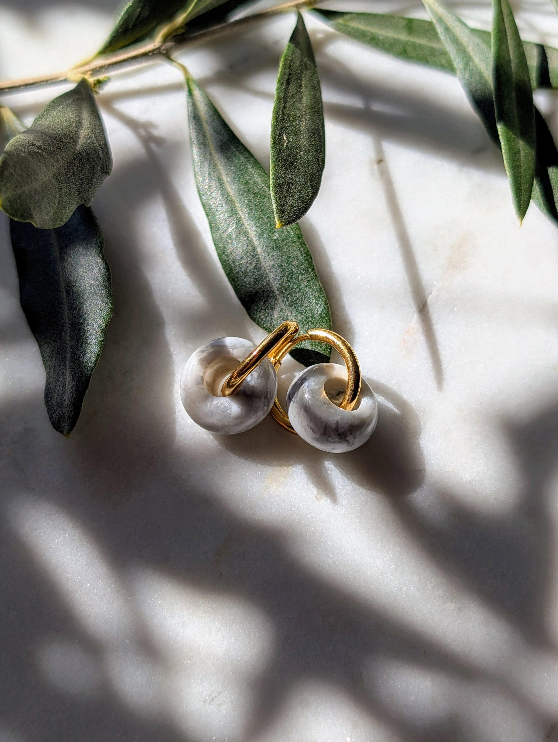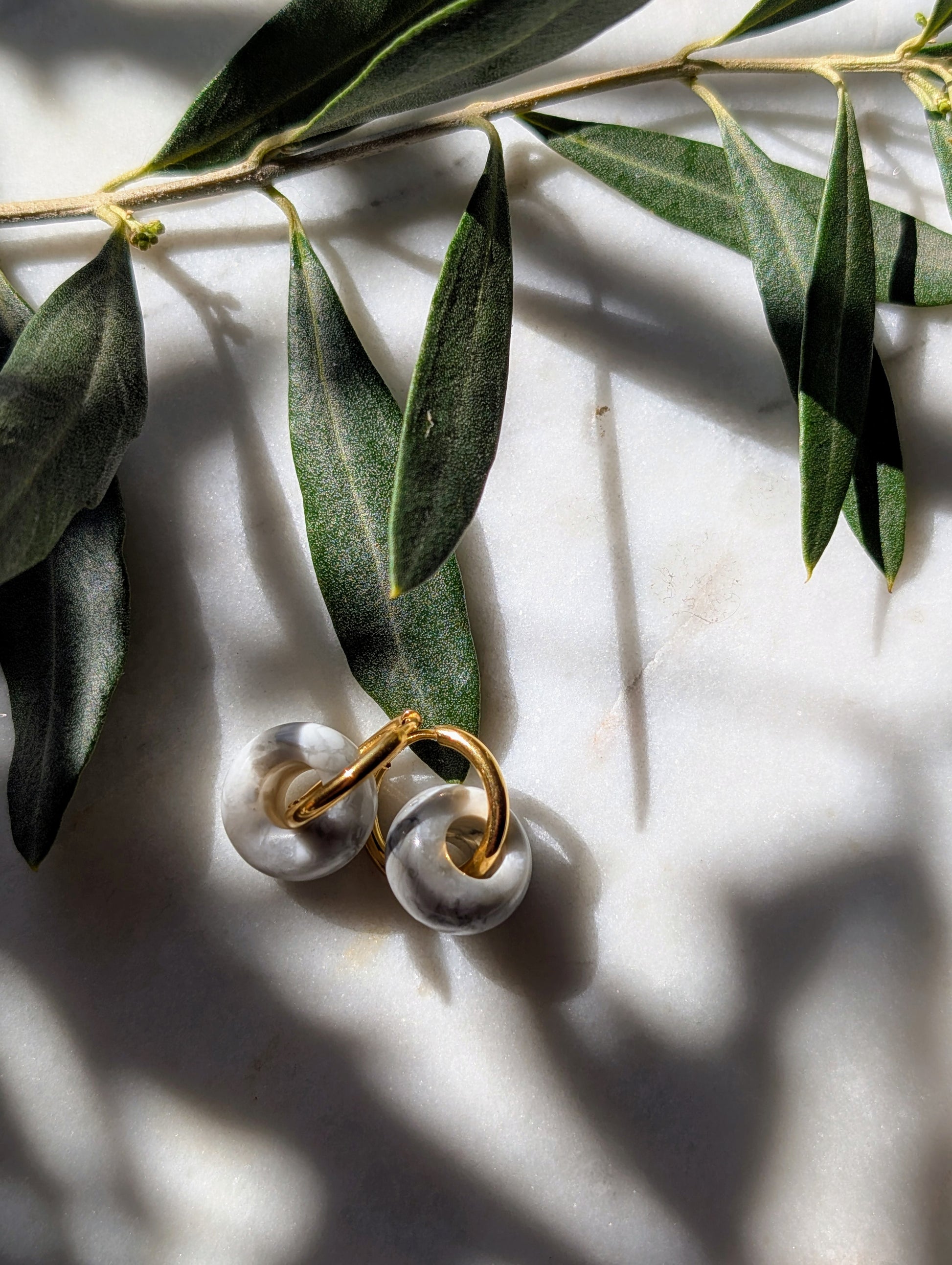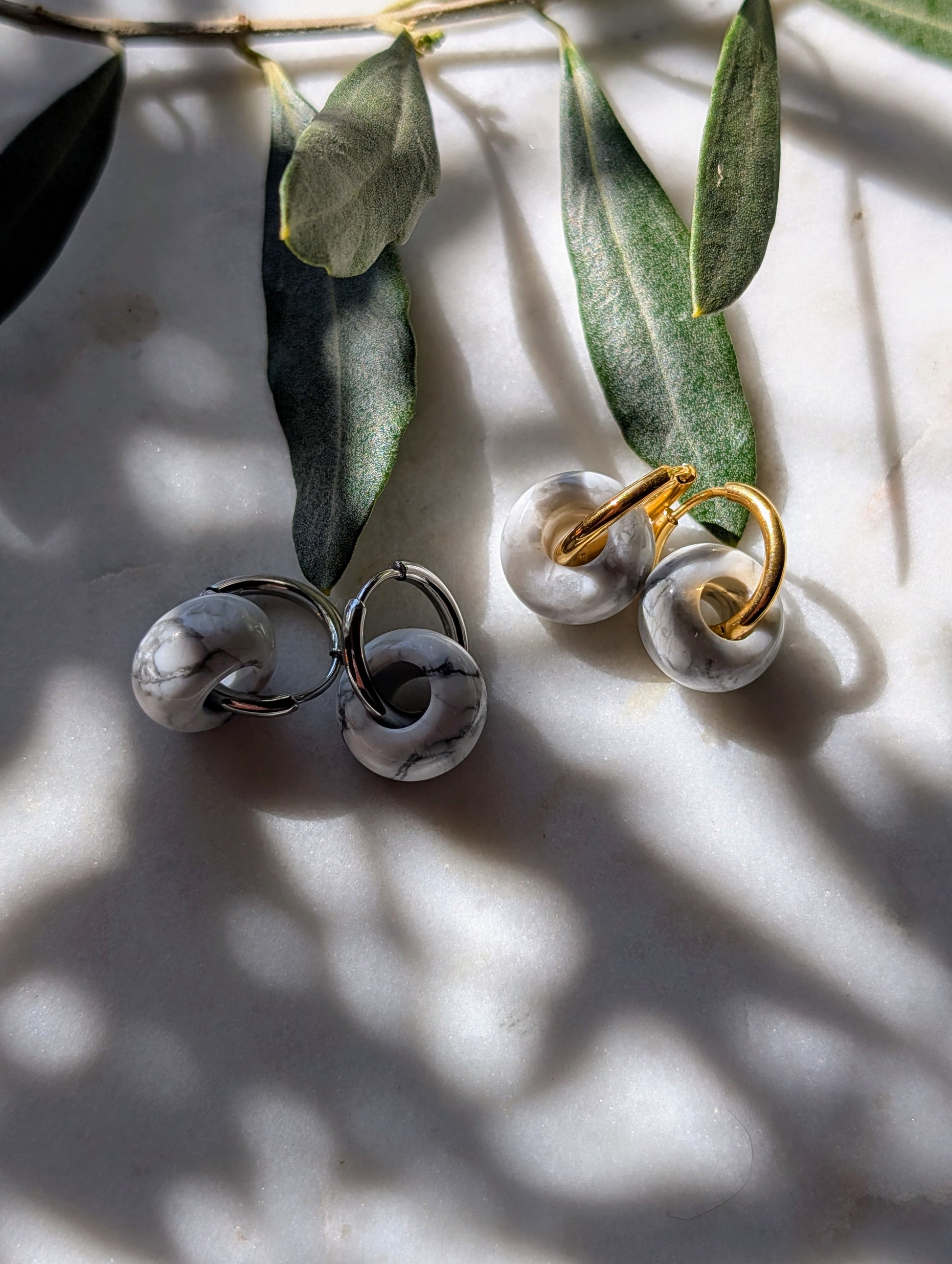 Die Creolen sind in Gold, Silber und Roségold erhältlich, so kannst du sie perfekt an deinen Stil anpassen. Ob für einen entspannten Tag oder einen besonderen Anlass, diese Ohrringe sind ein zeitloses Schmuckstück, das sich wunderbar kombinieren lässt und durch den Howlith-Loop zum persönlichen Statement wird.