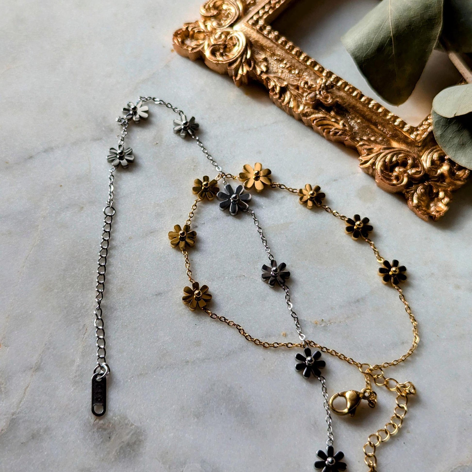Goldfarbenes Edelstahl-Fußkettchen mit filigranen Gänseblümchen – Trendiges Naturmotiv für sommerliche Looks