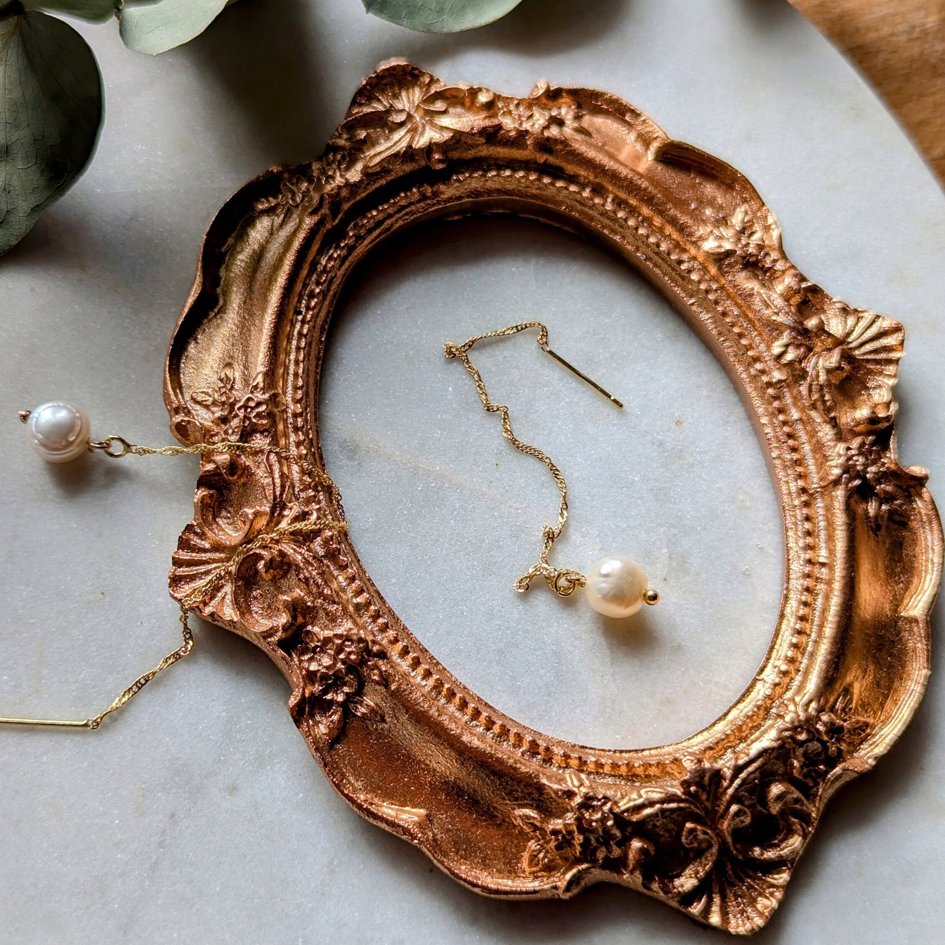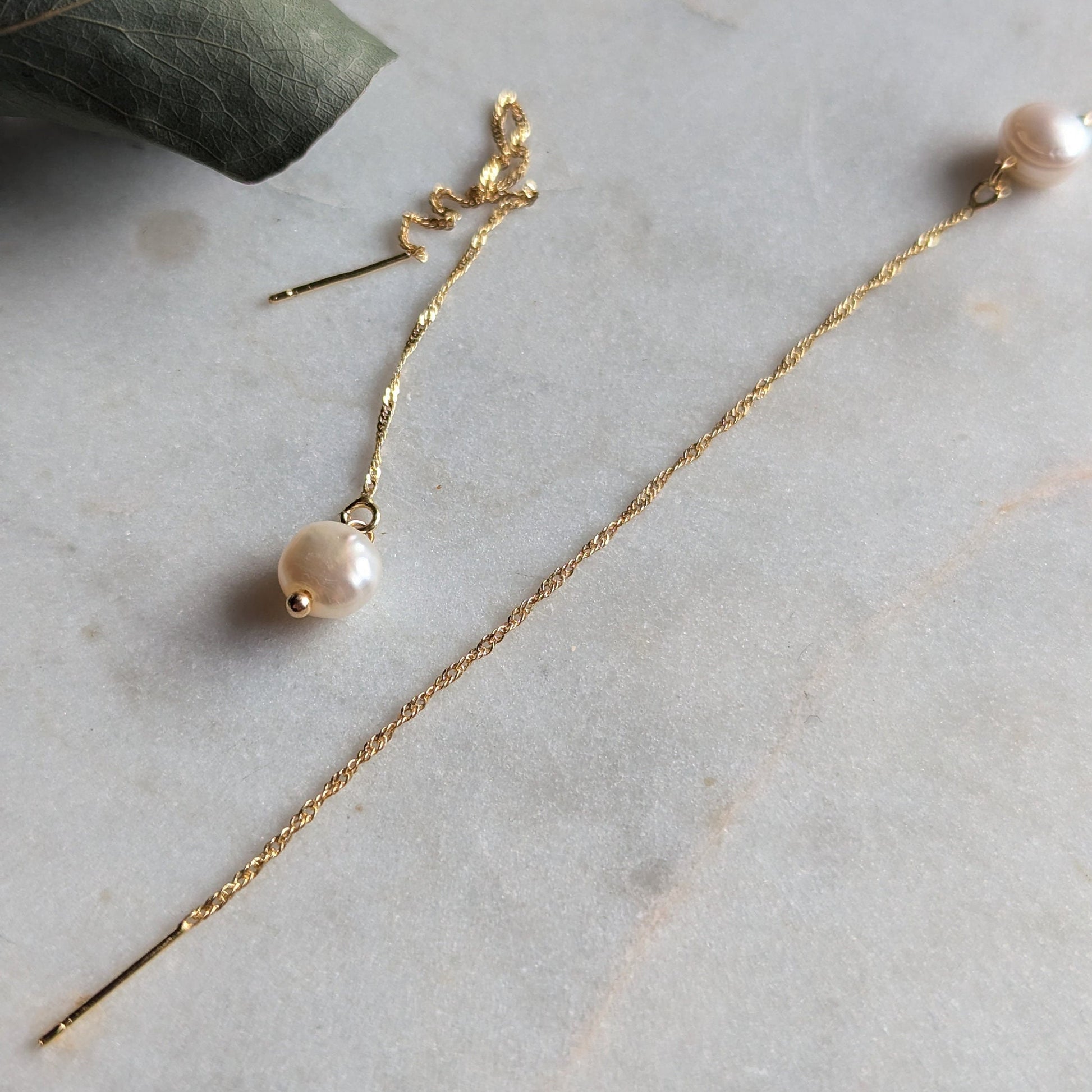 Die Ohrketten gleiten mühelos durch dein Ohrloch und benötigen keinen Verschluss, was für ein besonders angenehmes und leichtes Tragegefühl sorgt – kein Ziehen oder Drücken. Mit einer Gesamtlänge von circa 11,5 cm (inklusive Perlen) sind sie ein dezenter und doch auffälliger Blickfang.