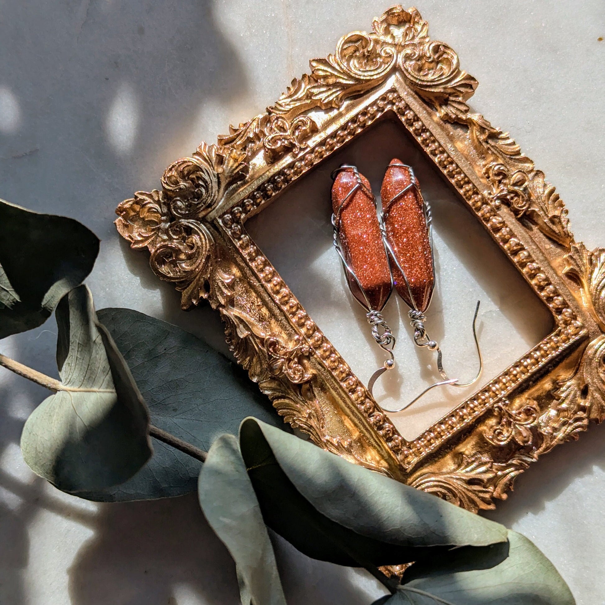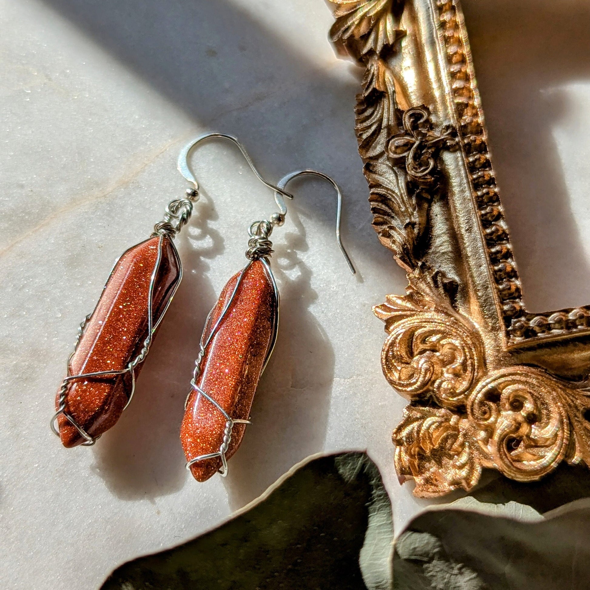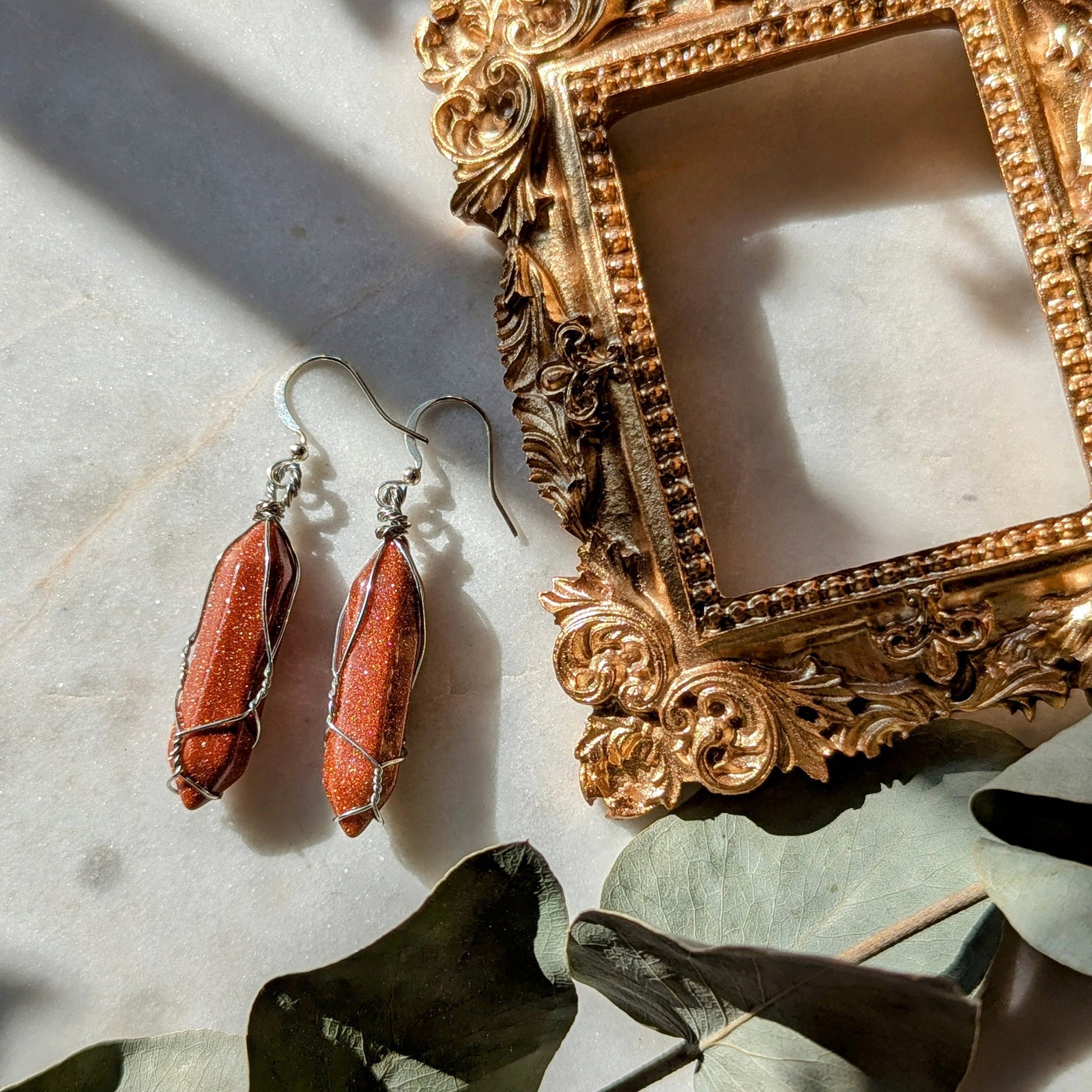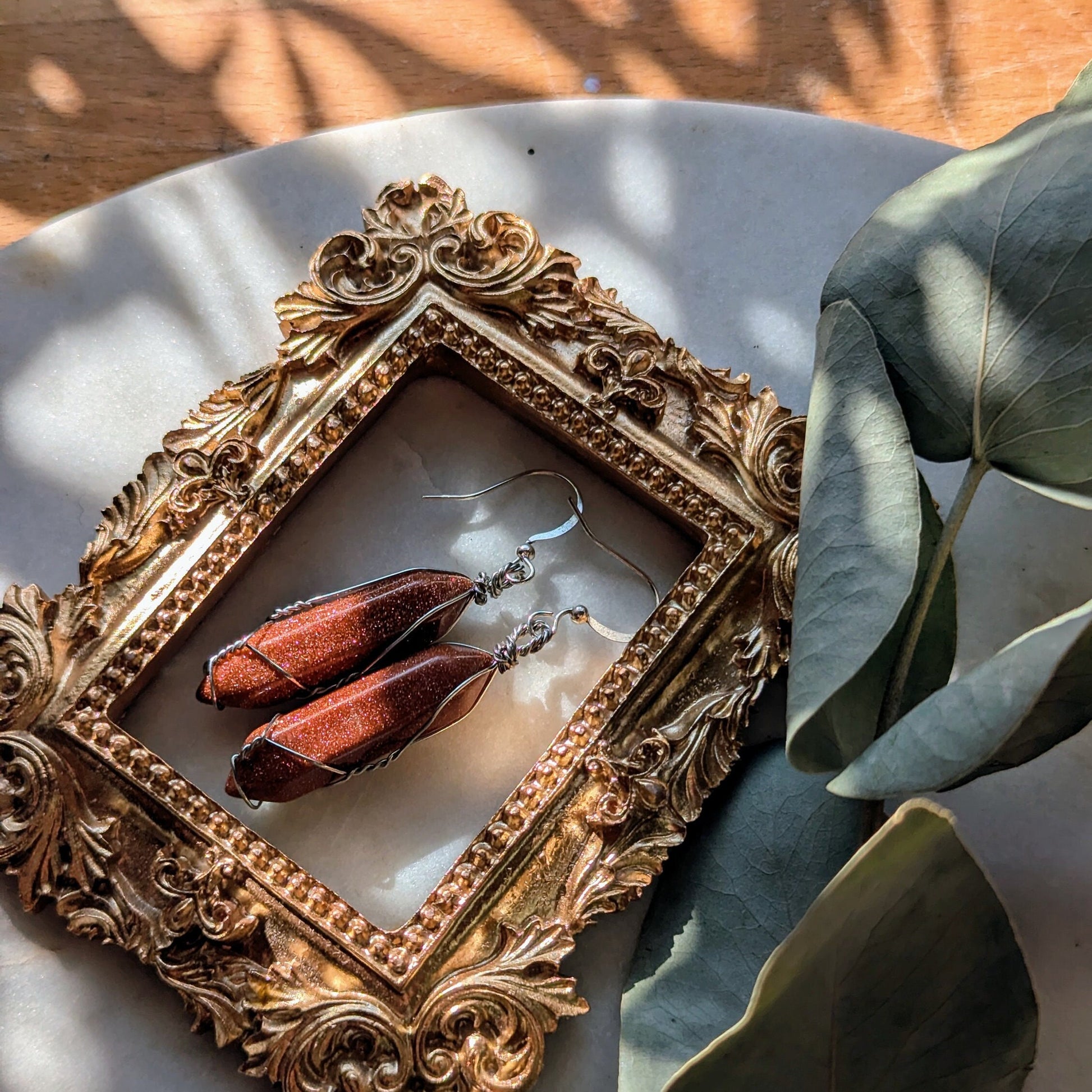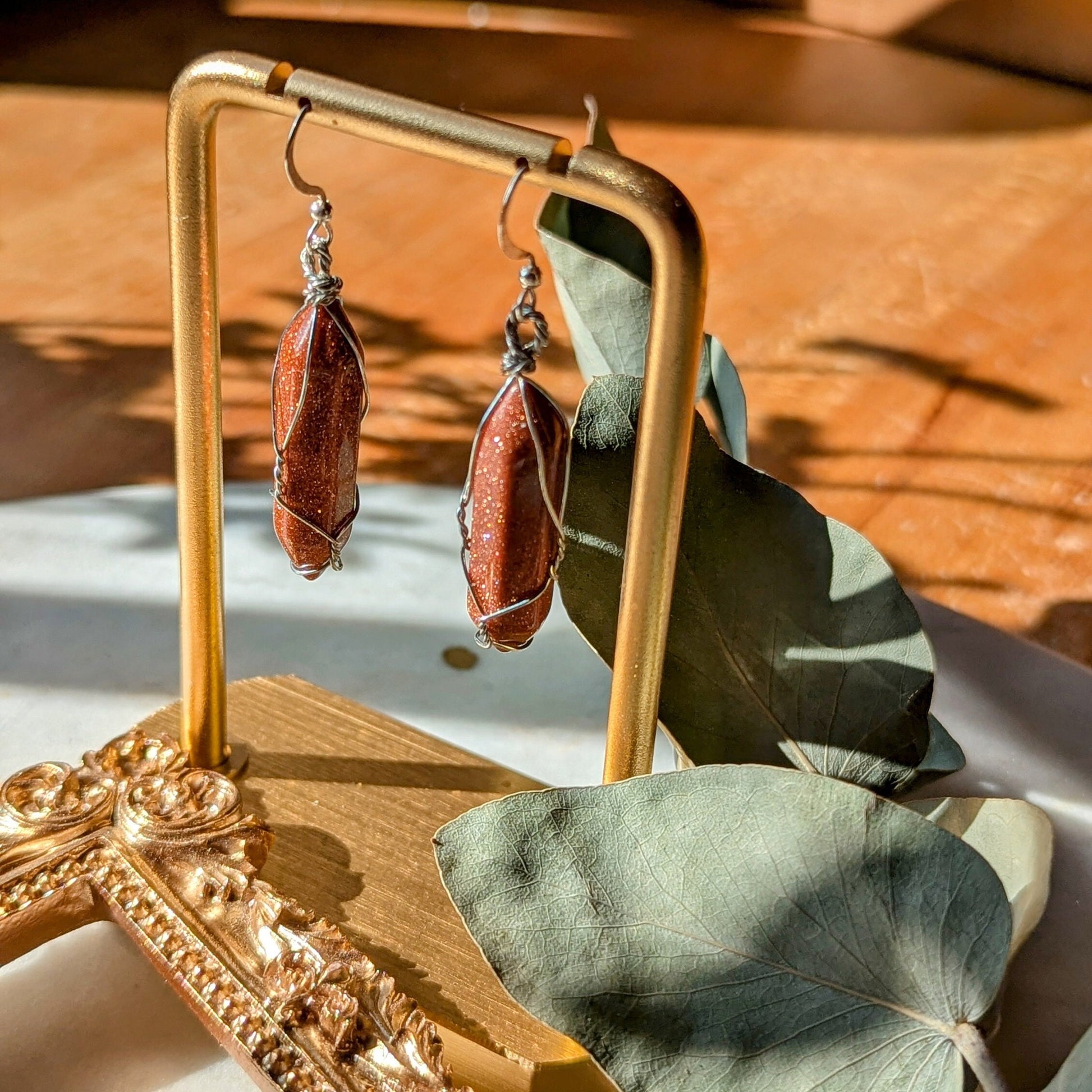 Ohrhänger "Starlight Glow" – Goldfluss-Pendel & Silberdrah