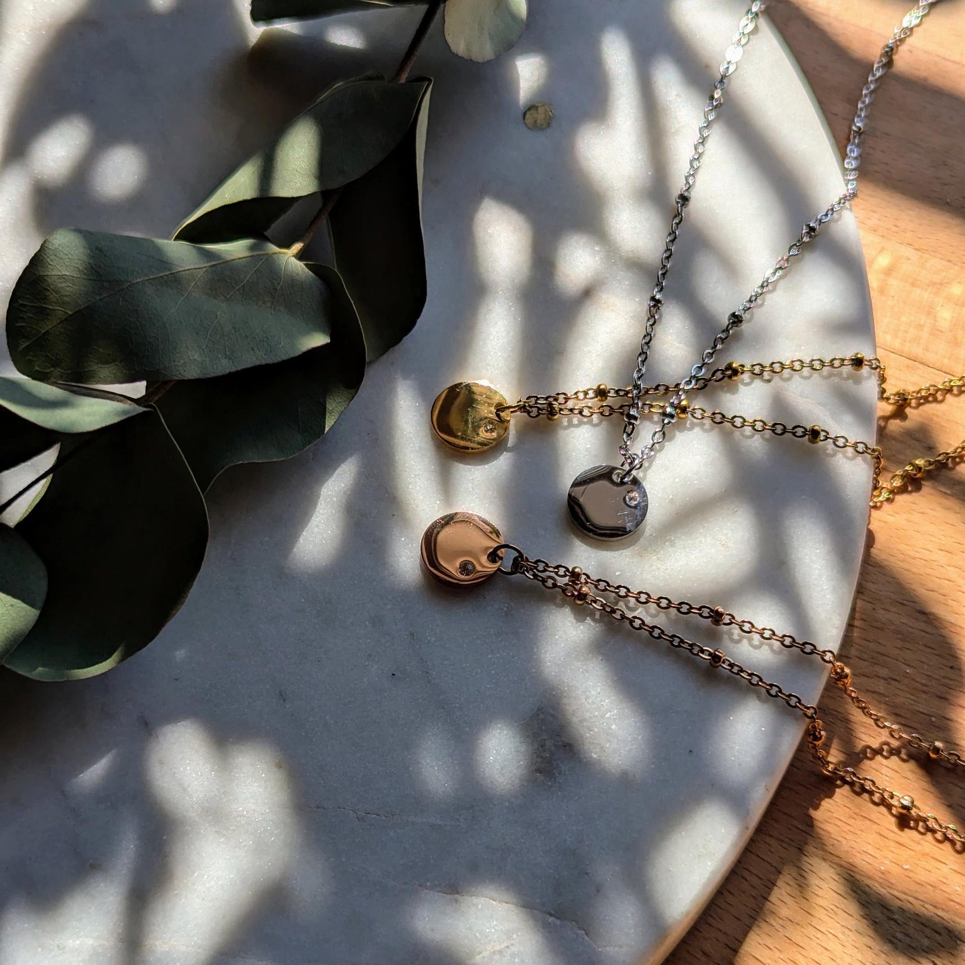 Satellitenkette in drei Farben mit rundem Anhänger mit eingelassenem Zirkonia