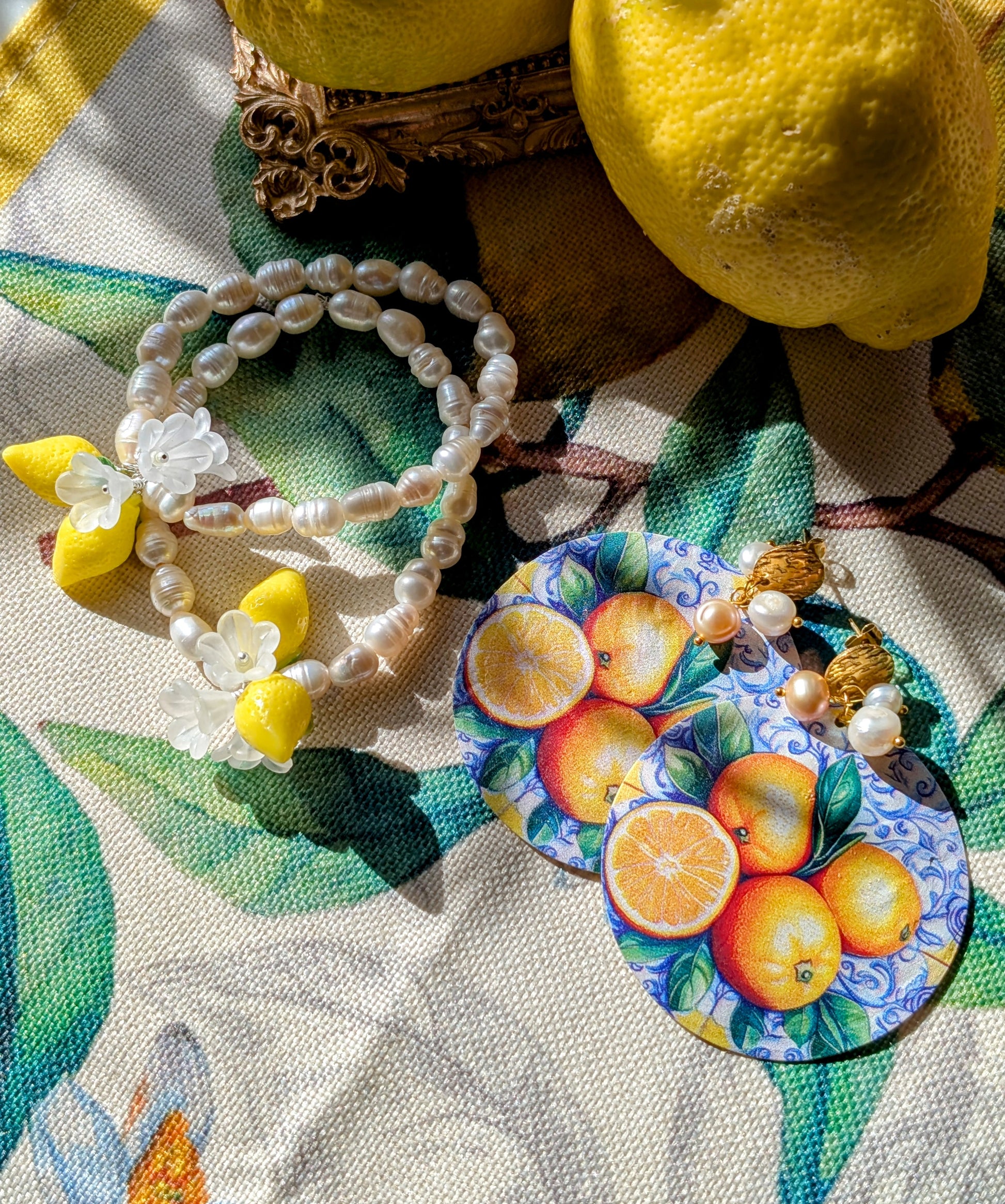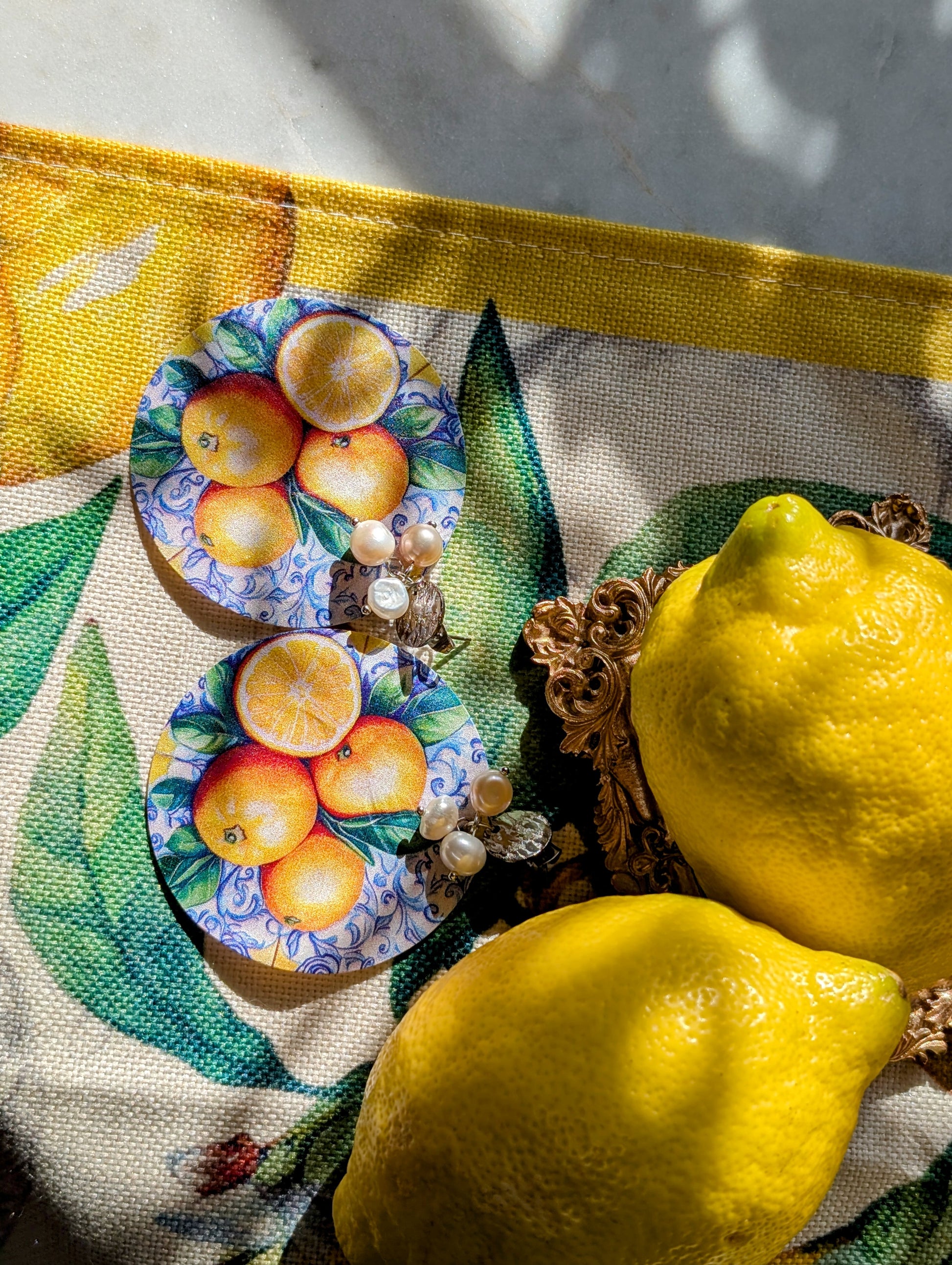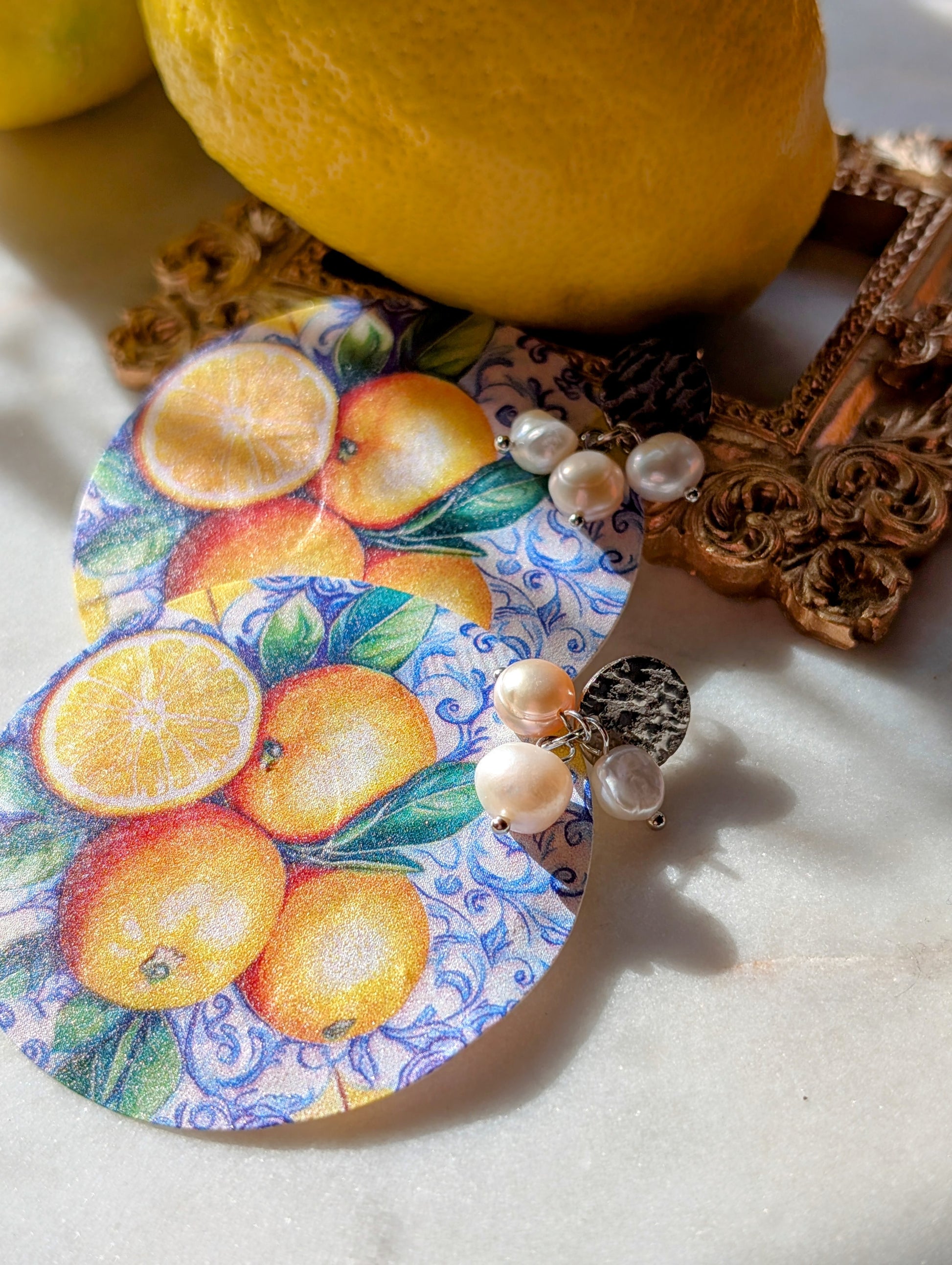 Luce di Amalfi – „Das Licht von Amalfi“ - Ohrringe aus Perlmutt mit Zitronenmuster