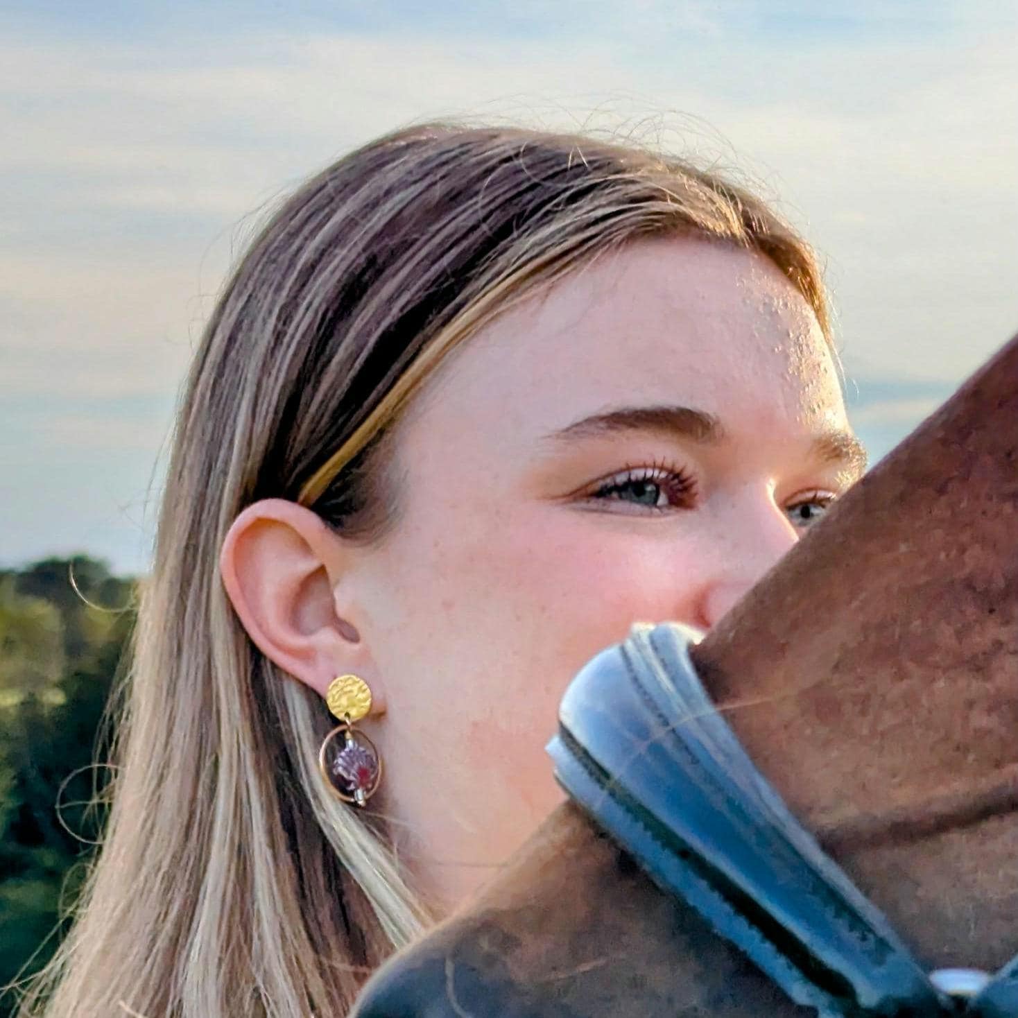 Die Ohrstecker selbst bestehen aus hochwertigem Edelstahl und haben einen Durchmesser von circa 1,2 cm. Die Muschelperlen aus Keramik messen etwa 1,1 cm x 1,2 cm, und der Messingring hat einen Durchmesser von circa 2 cm. Mit einer Gesamtlänge von ungefähr 3,4 cm sind diese Ohrringe dezent, aber auffällig genug, um alle Blicke auf sich zu ziehen.