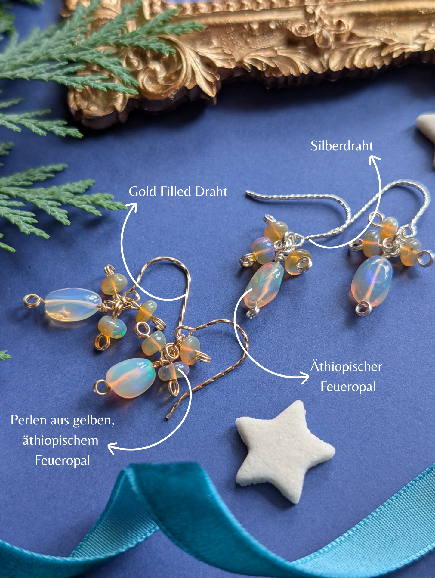 Wie Nordlichter am winterlichen Nachthimmel – diese Ohrringe fangen das magische Leuchten des äthiopischen Feueropals ein. Die schimmernden Steine spielen mit Farben von intensivem Orange bis zu sanftem Cremeweiß, durchsetzt mit feinen, tanzenden Lichtblitzen.