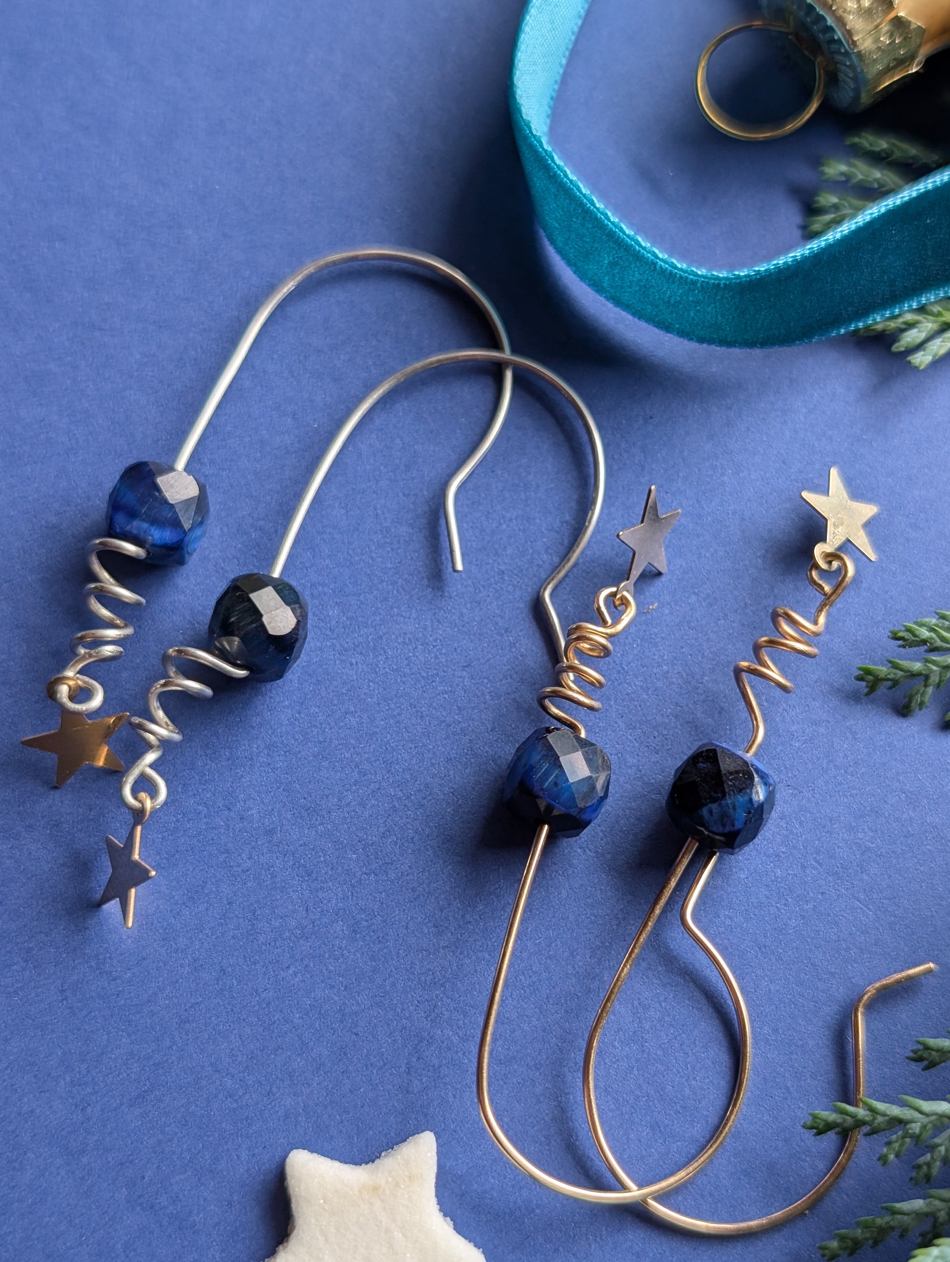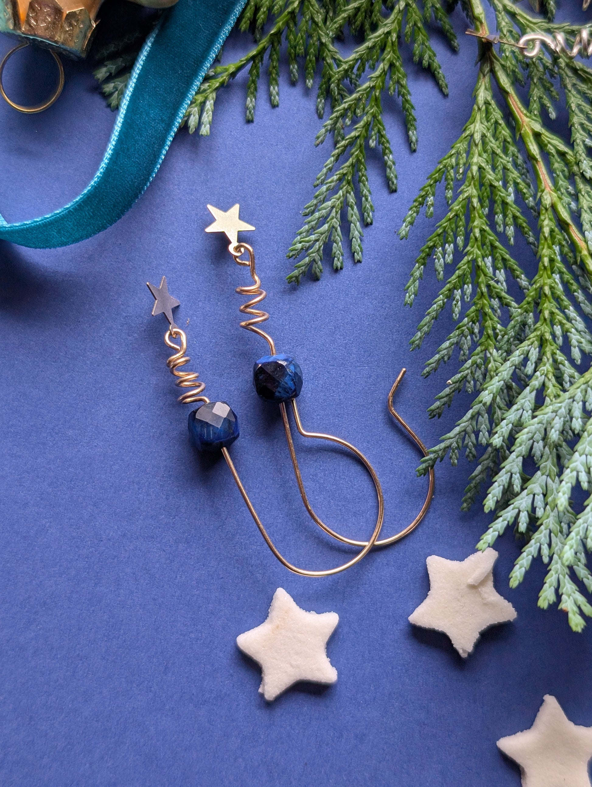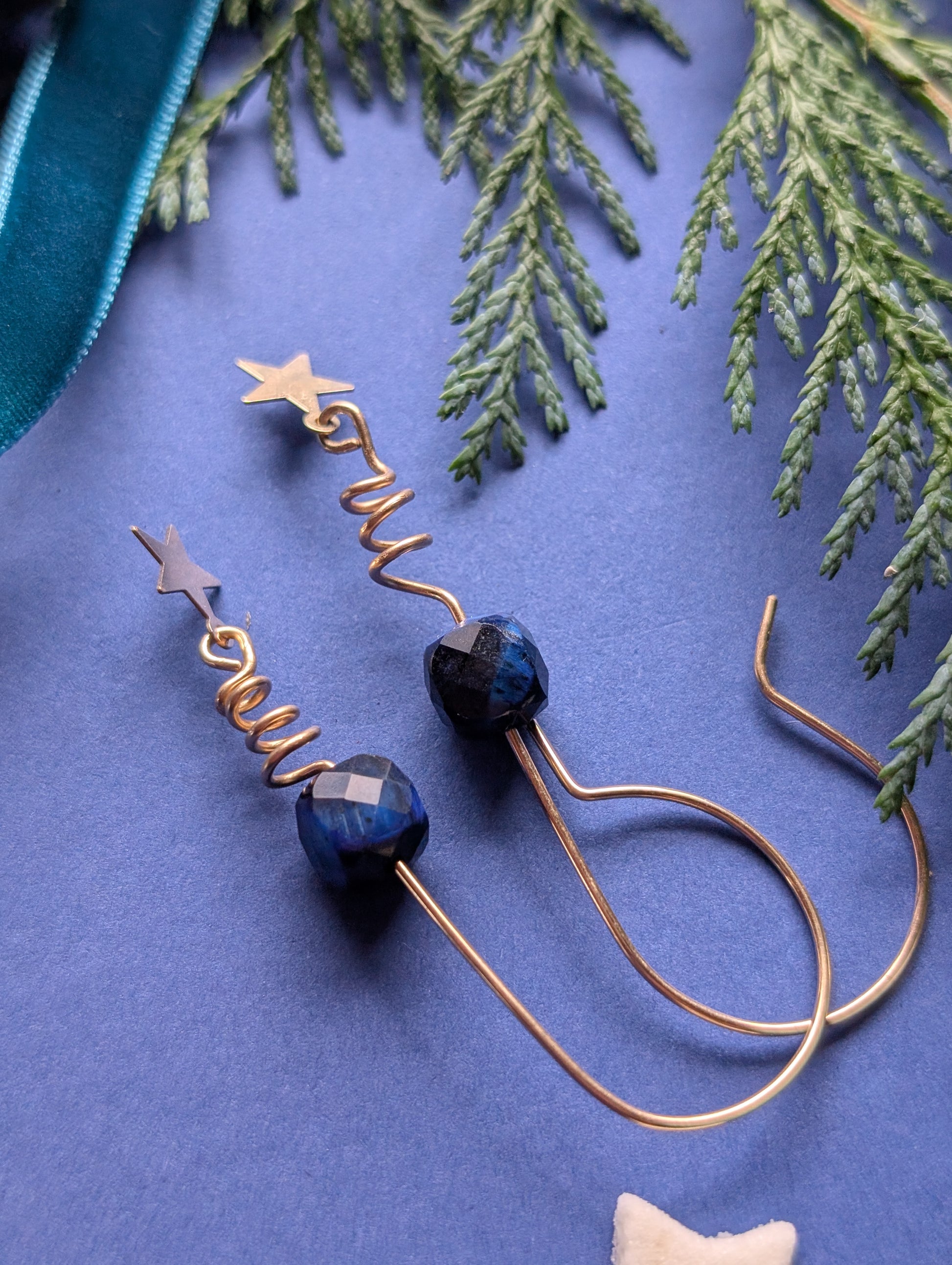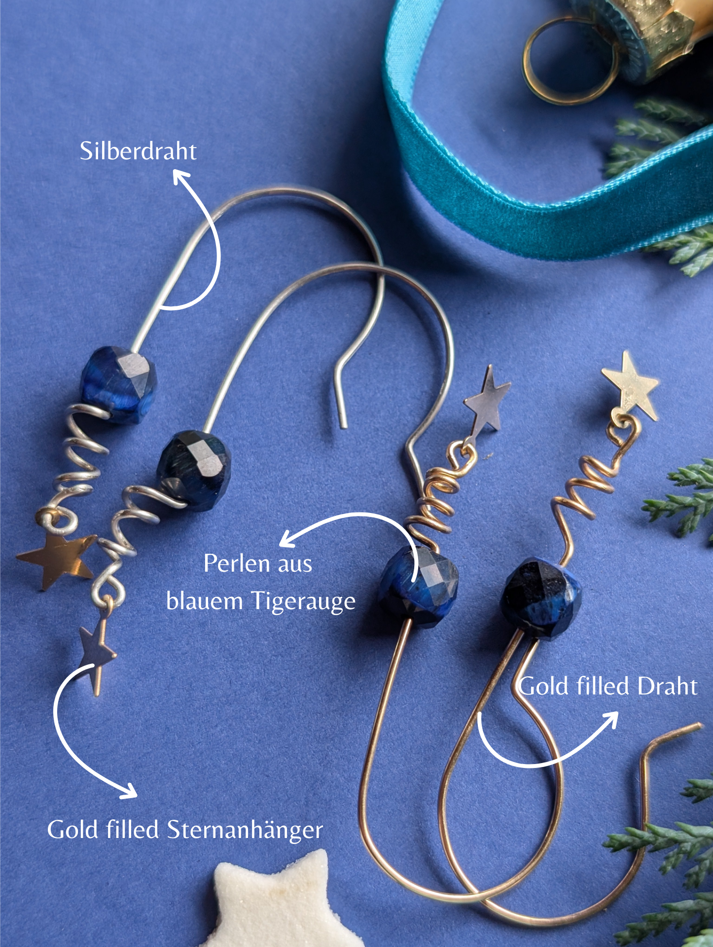 Ohrhänger Polaris - Silber & Gold mit Sternen und Tigerauge