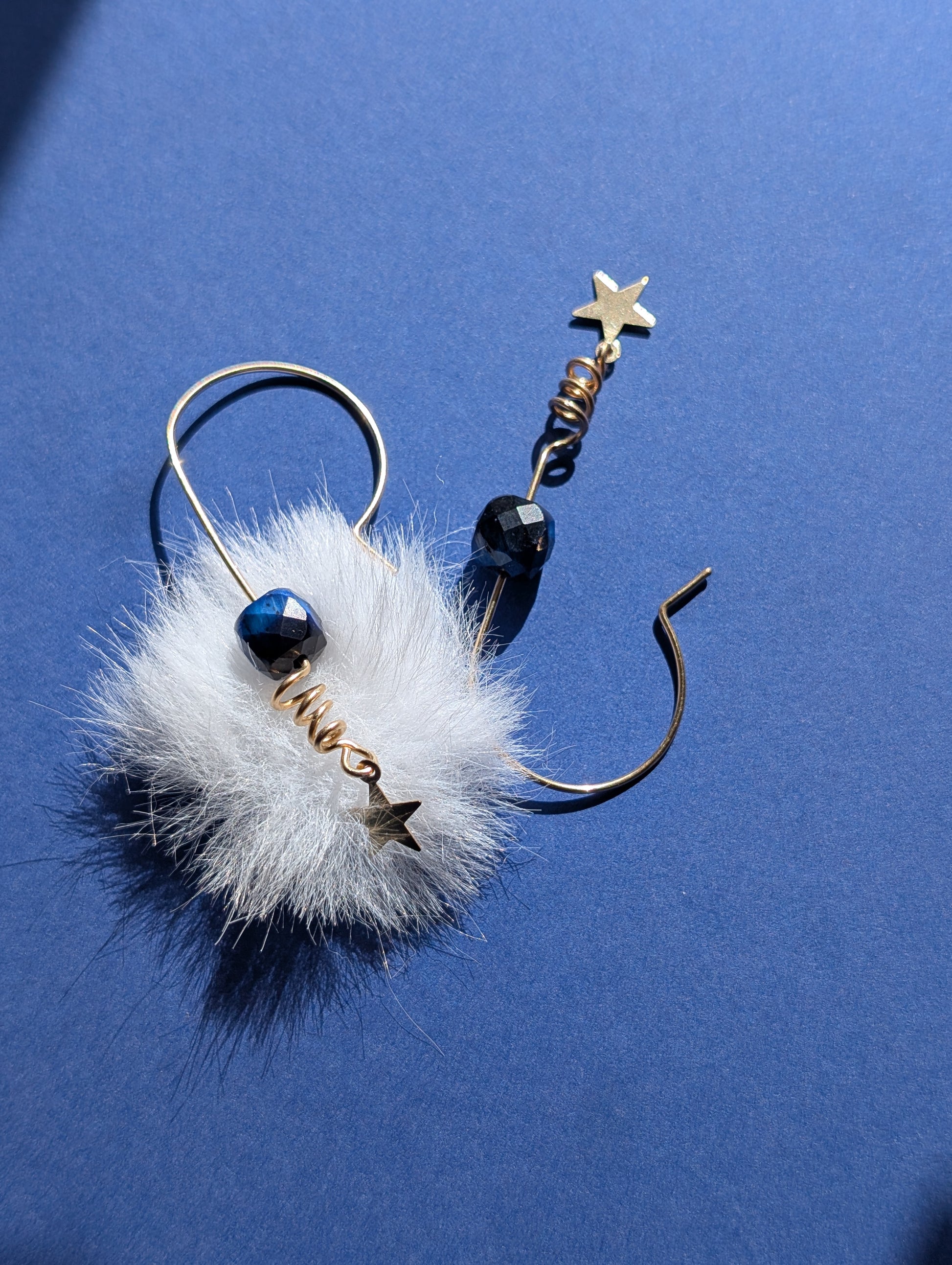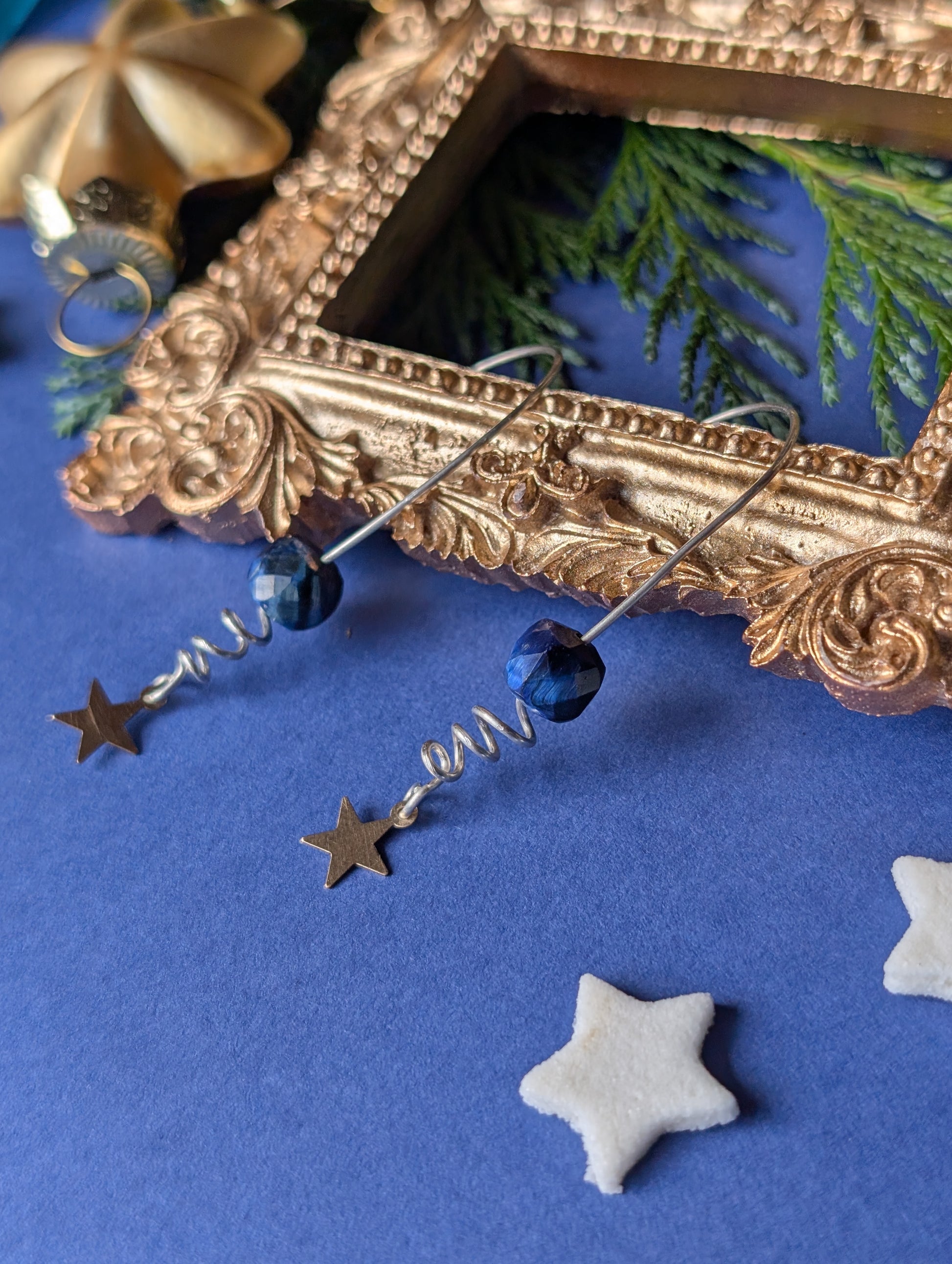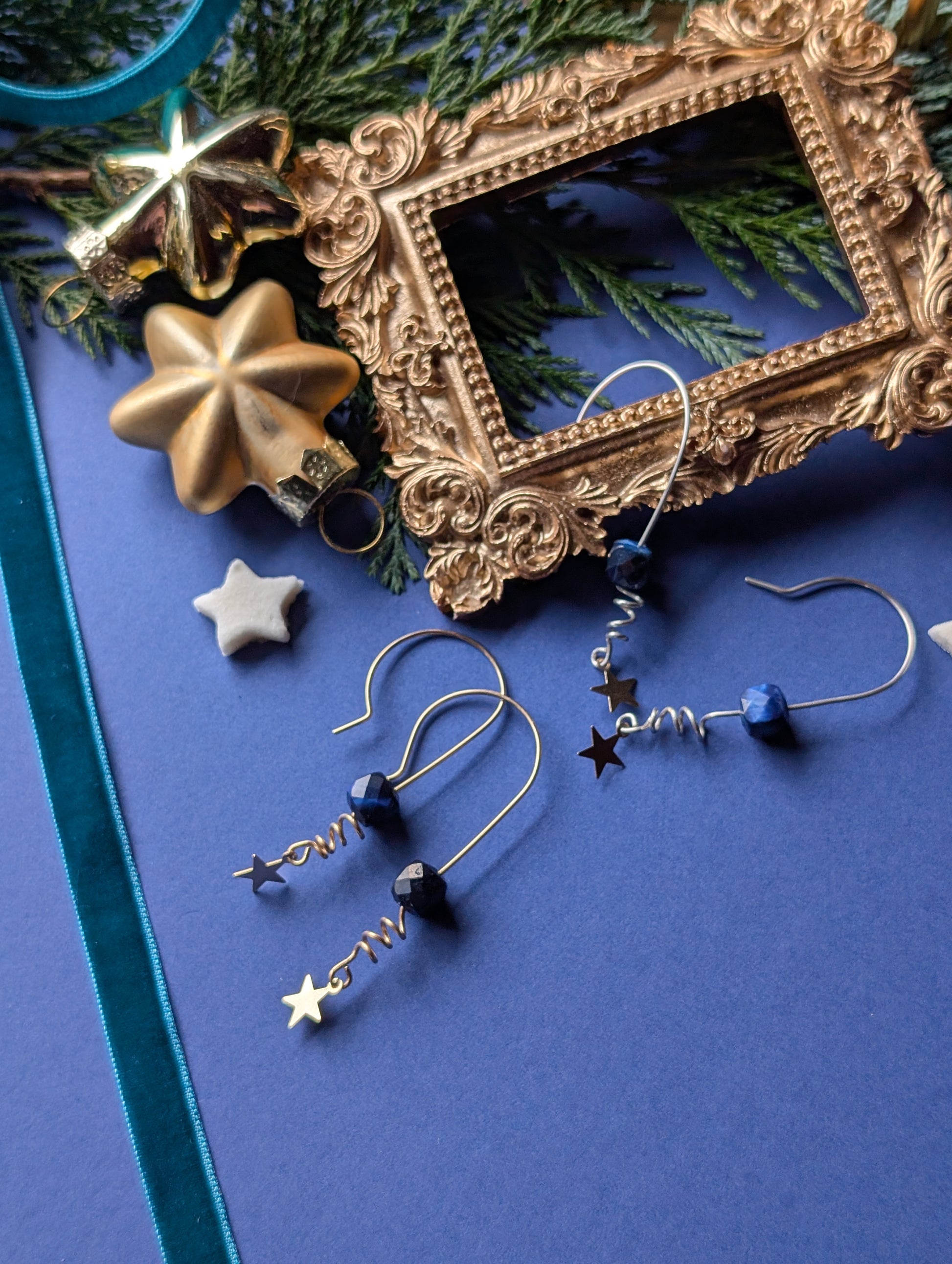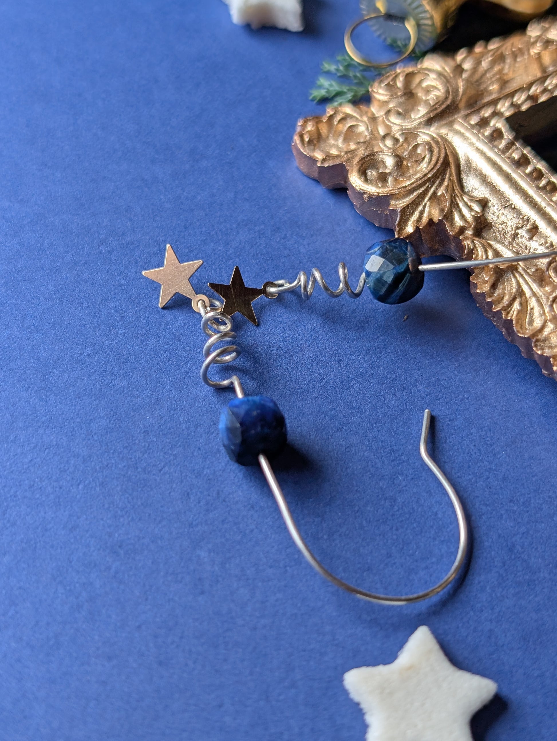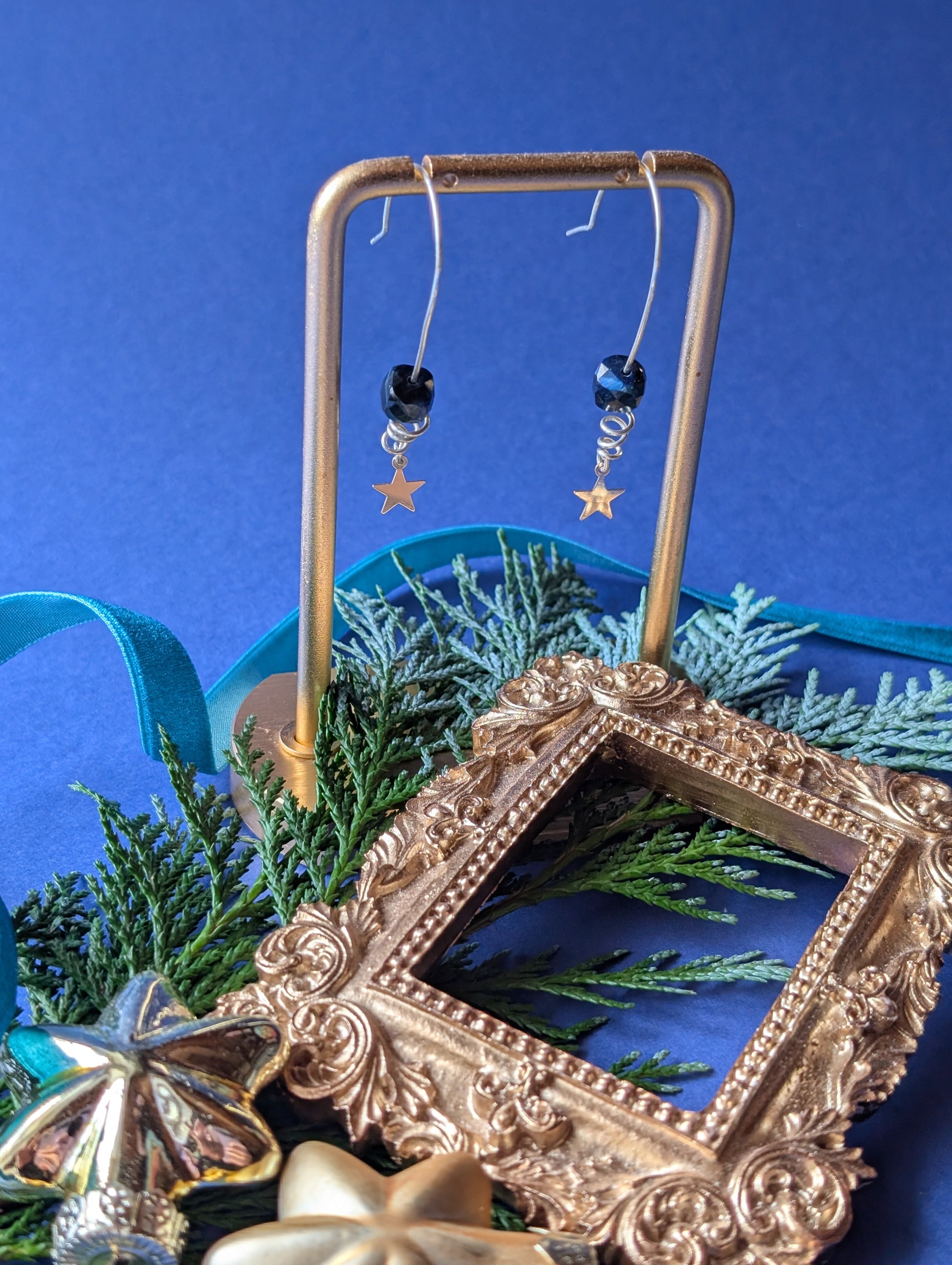 Ohrhänger Polaris - Silber & Gold mit Sternen und Tigerauge