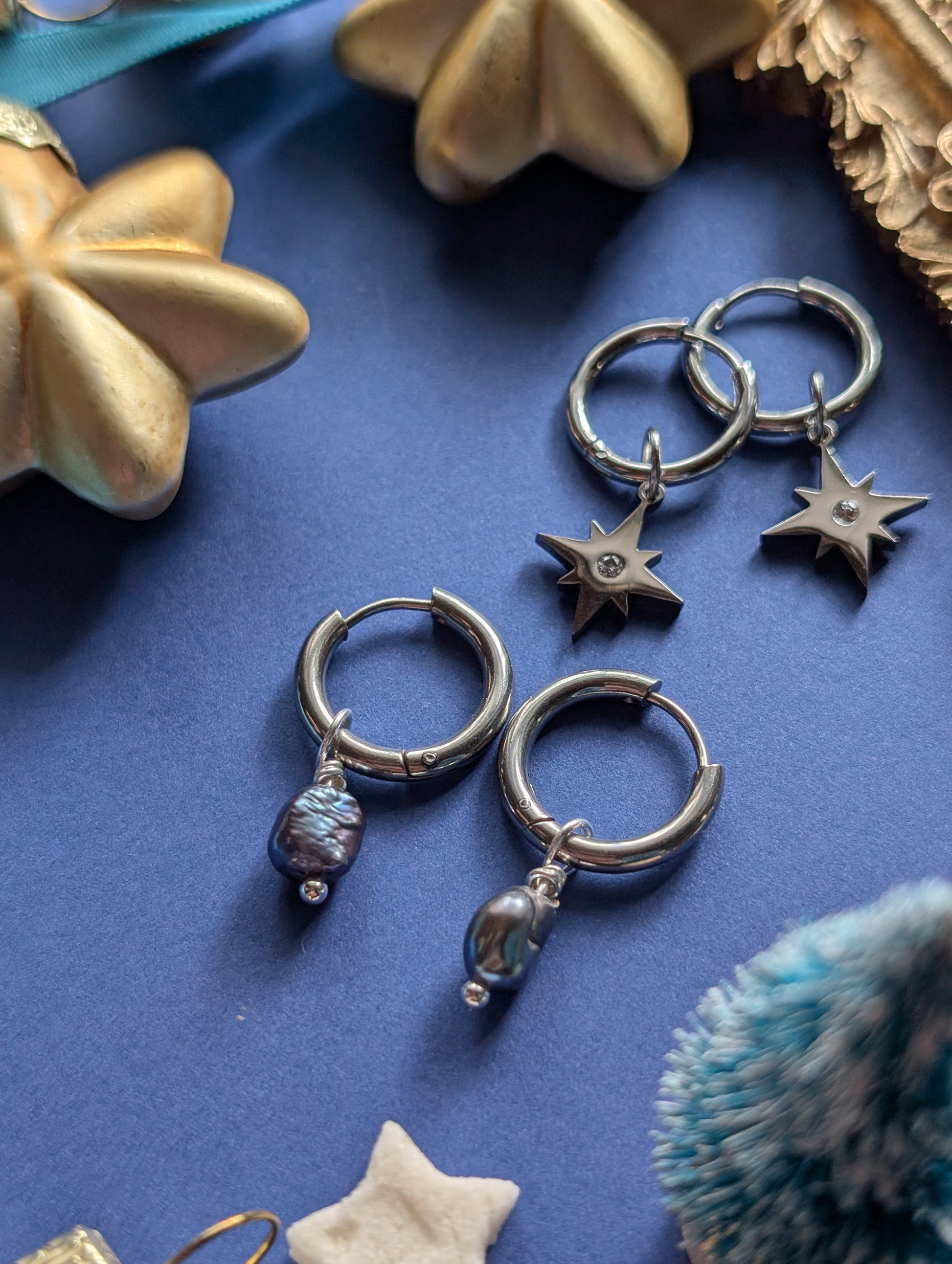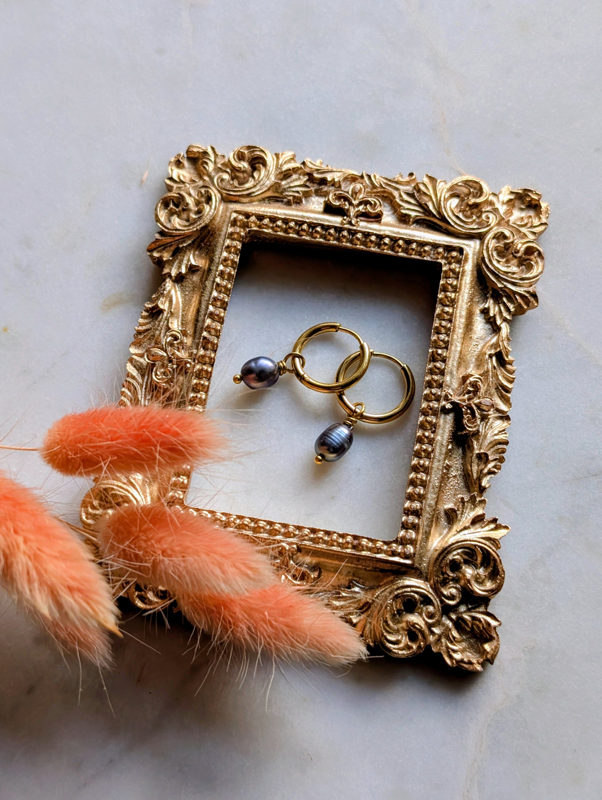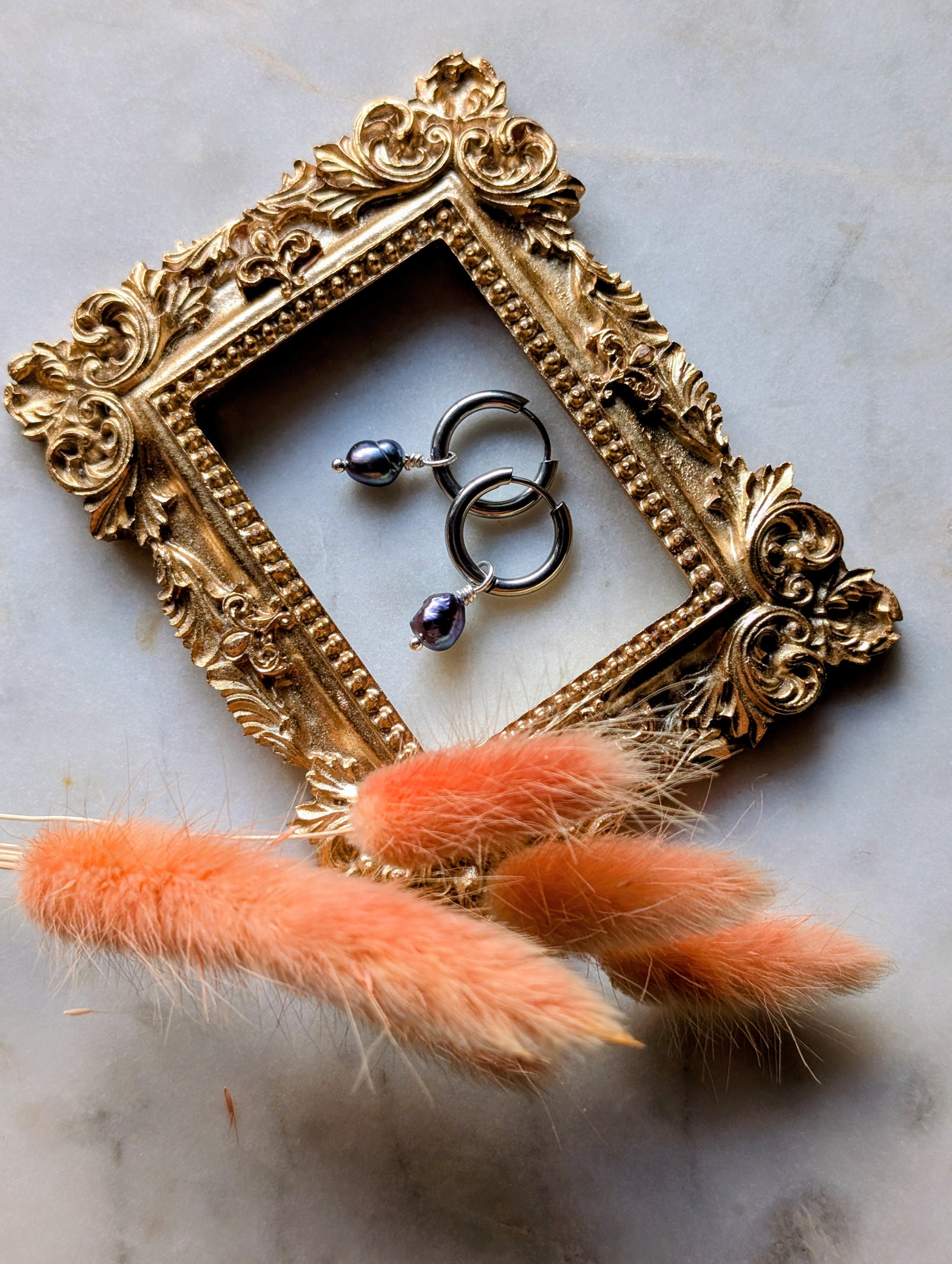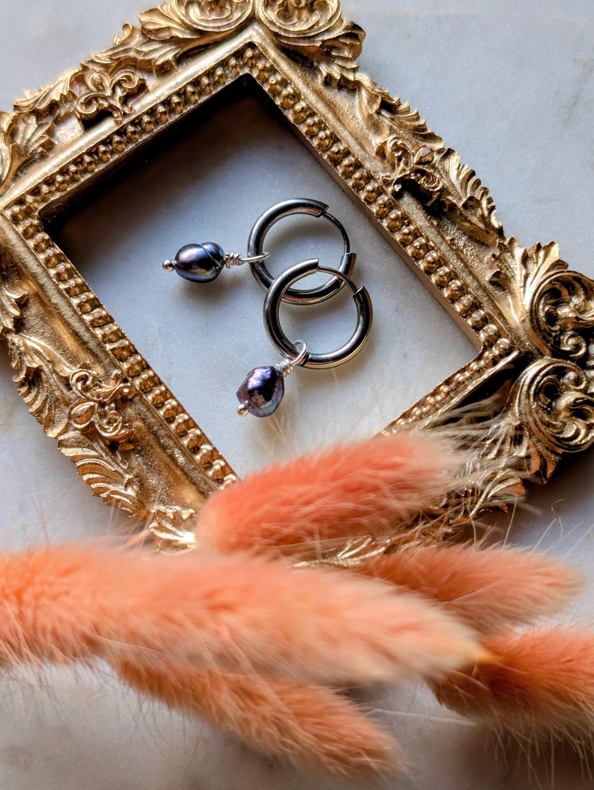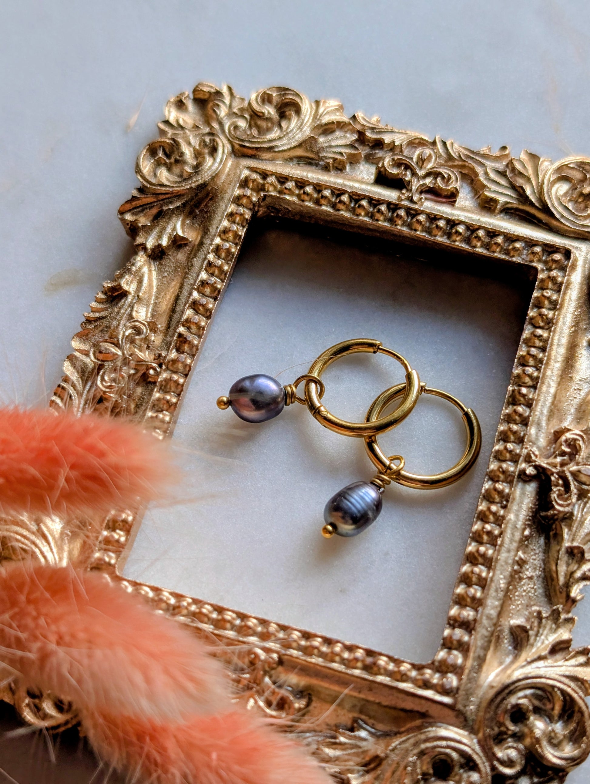 Die Midnight Pearl Creolen verleihen jedem Look eine tiefgründige, geheimnisvolle Eleganz.