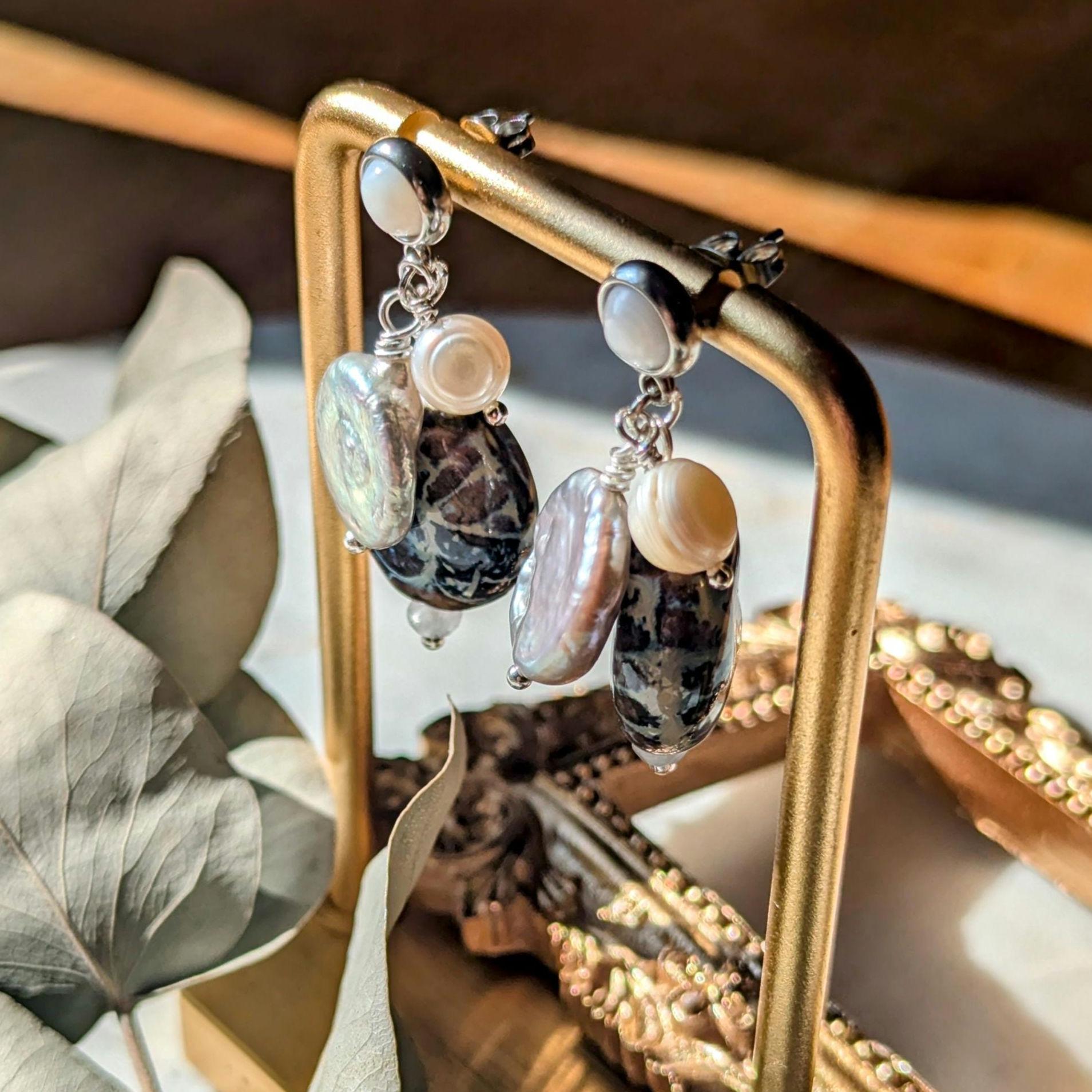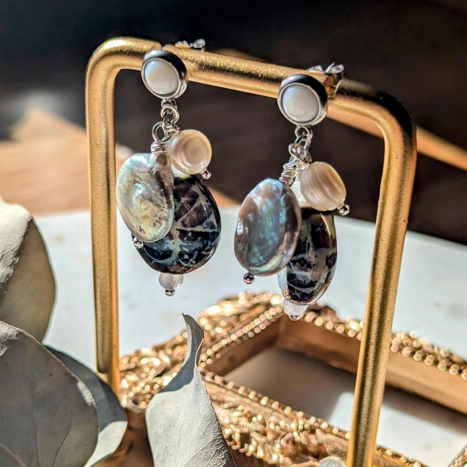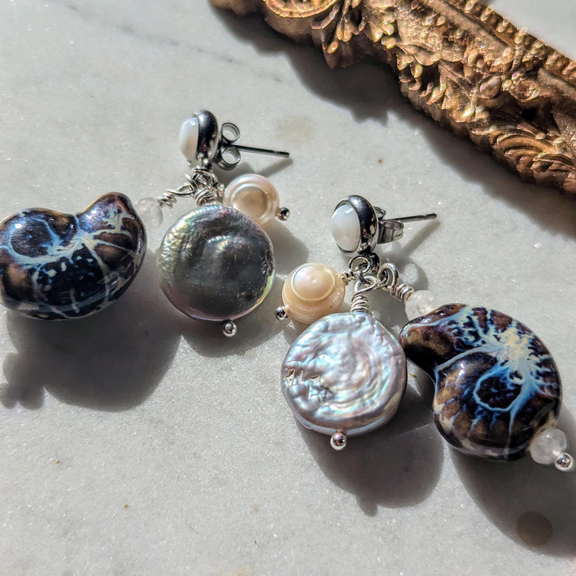 Ohrstecker "Ocean Treasure" – Perlmutt, Perlen & Keramik-Ammonit