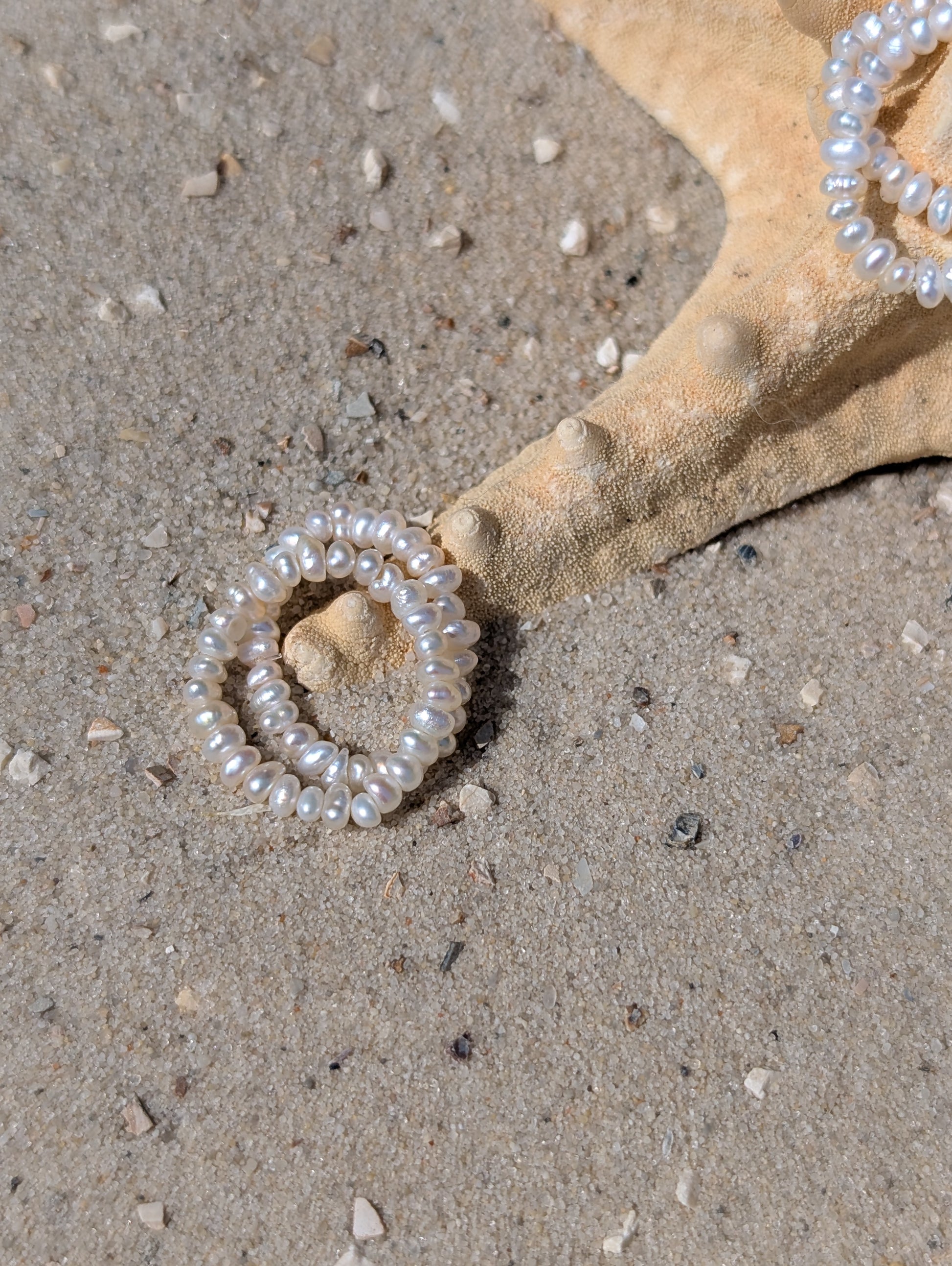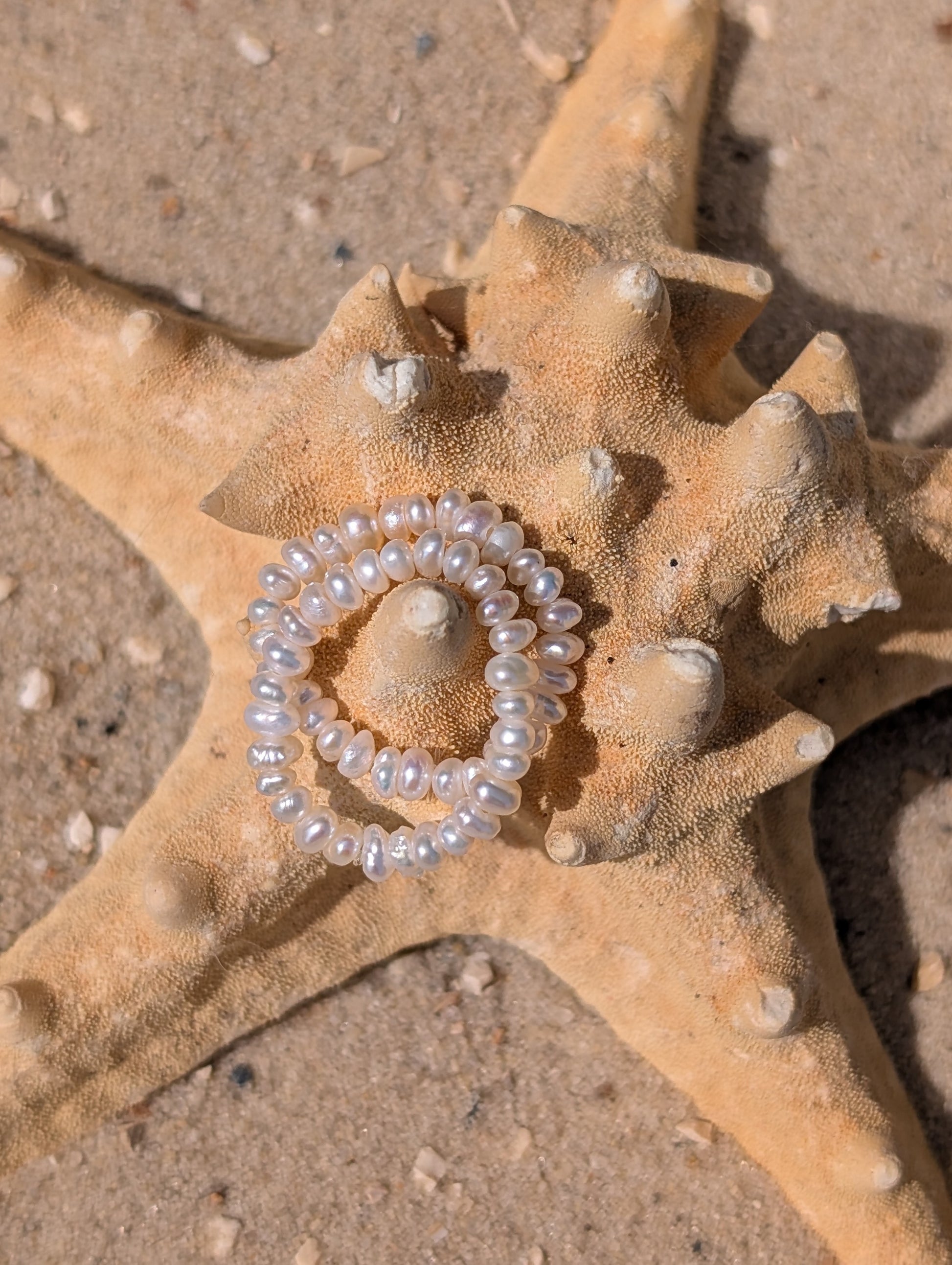 Tauche ein in die zarte Eleganz des Perlenring "Luna", ein handgefertigtes Schmuckstück, das die schlichte Schönheit von echten Süßwasserperlen mit modernem Tragekomfort verbindet. Jede der 28 feinen Perlen, mit einer Stärke von etwa 2 mm, wurde sorgfältig ausgewählt und von Hand auf ein hochwertiges, elastisches Band gefädelt. Das Ergebnis ist ein dehnbarer Ring, der als Einheitsgröße überzeugt (US Ringgrößen ca. 6-9).