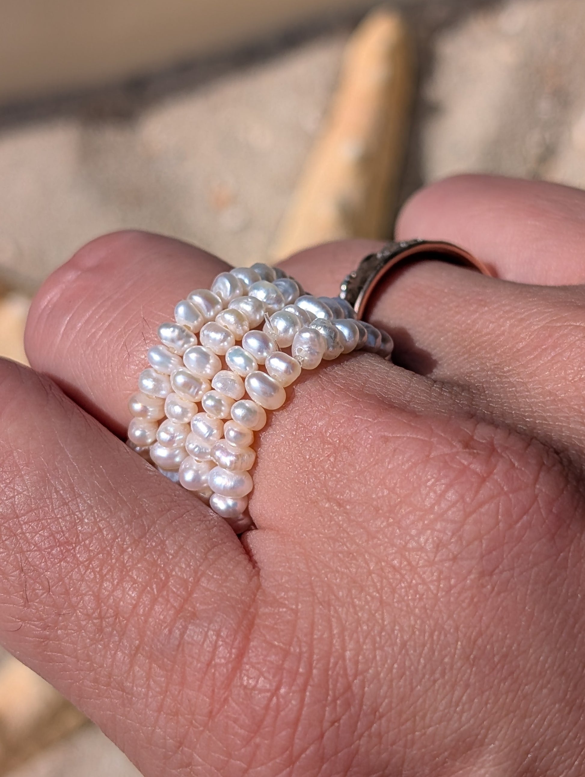 Dieser handgemachte Perlenring ist mehr als nur ein Accessoire – er ist ein Ausdruck von zeitloser Anmut. Seine filigrane Gestaltung macht ihn zum perfekten Begleiter für jeden Anlass, sei es im Alltag, im Büro oder bei besonderen Gelegenheiten. Er lässt sich wunderbar solo tragen oder mit anderen Ringen kombinieren, um deinen individuellen Stil zu unterstreichen. Die natürlichen Süßwasserperlen fangen das Licht sanft ein und verleihen deinem Look einen Hauch von subtilem Glanz.