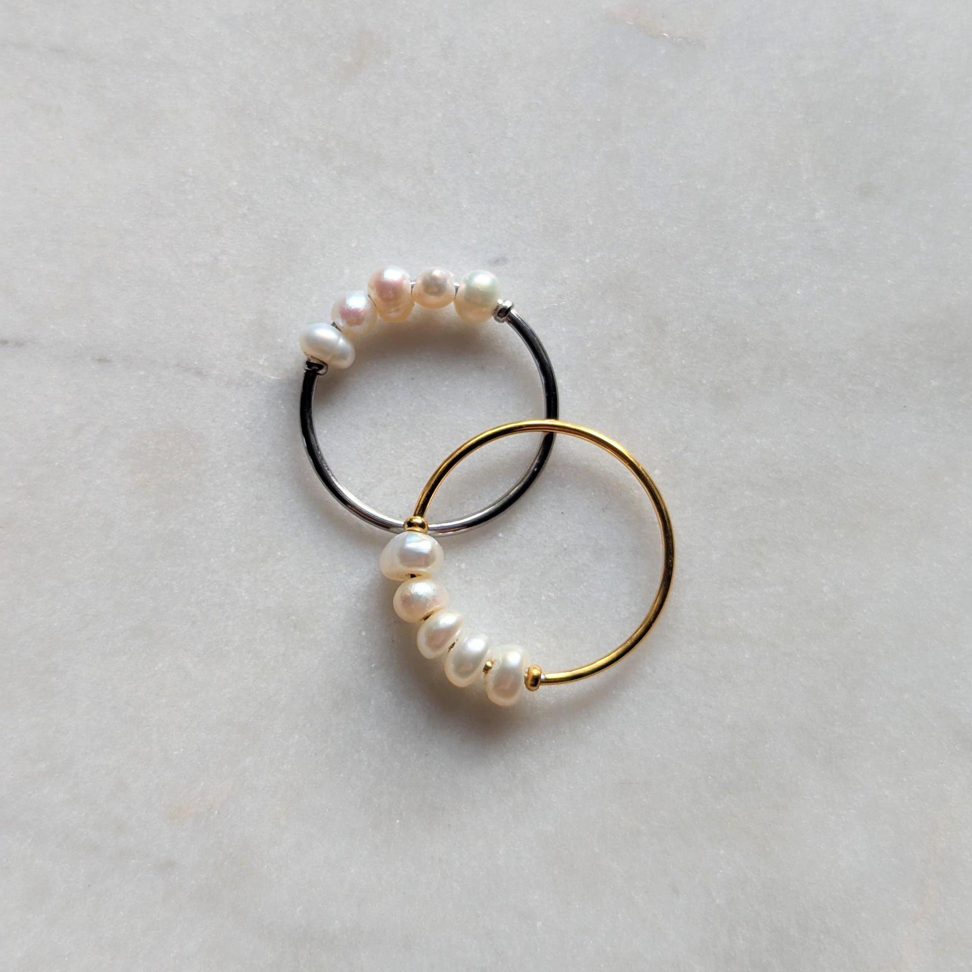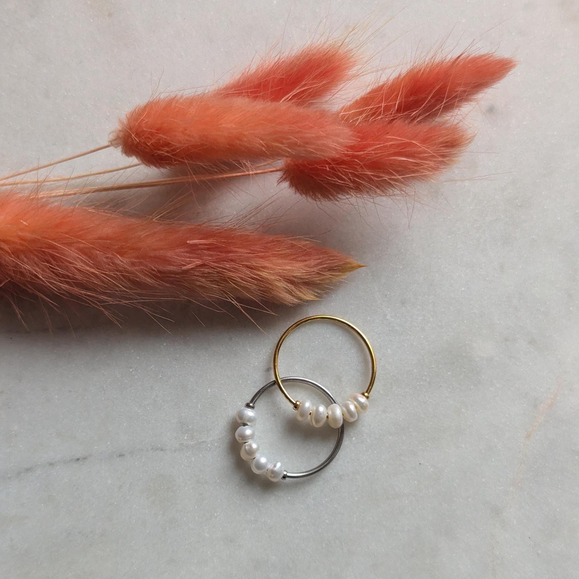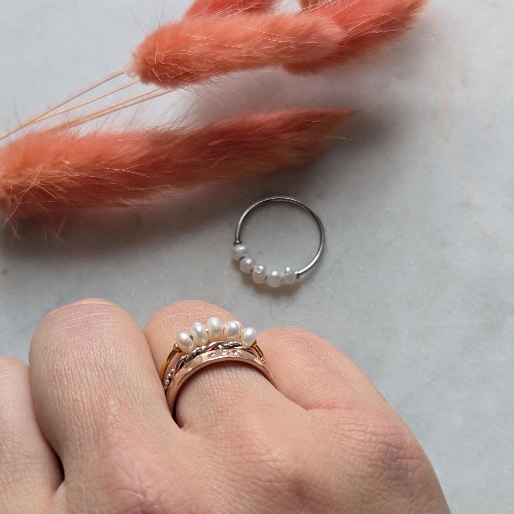 Perlenring "Sweetpea" – Edelstahl mit Süßwasserperlen