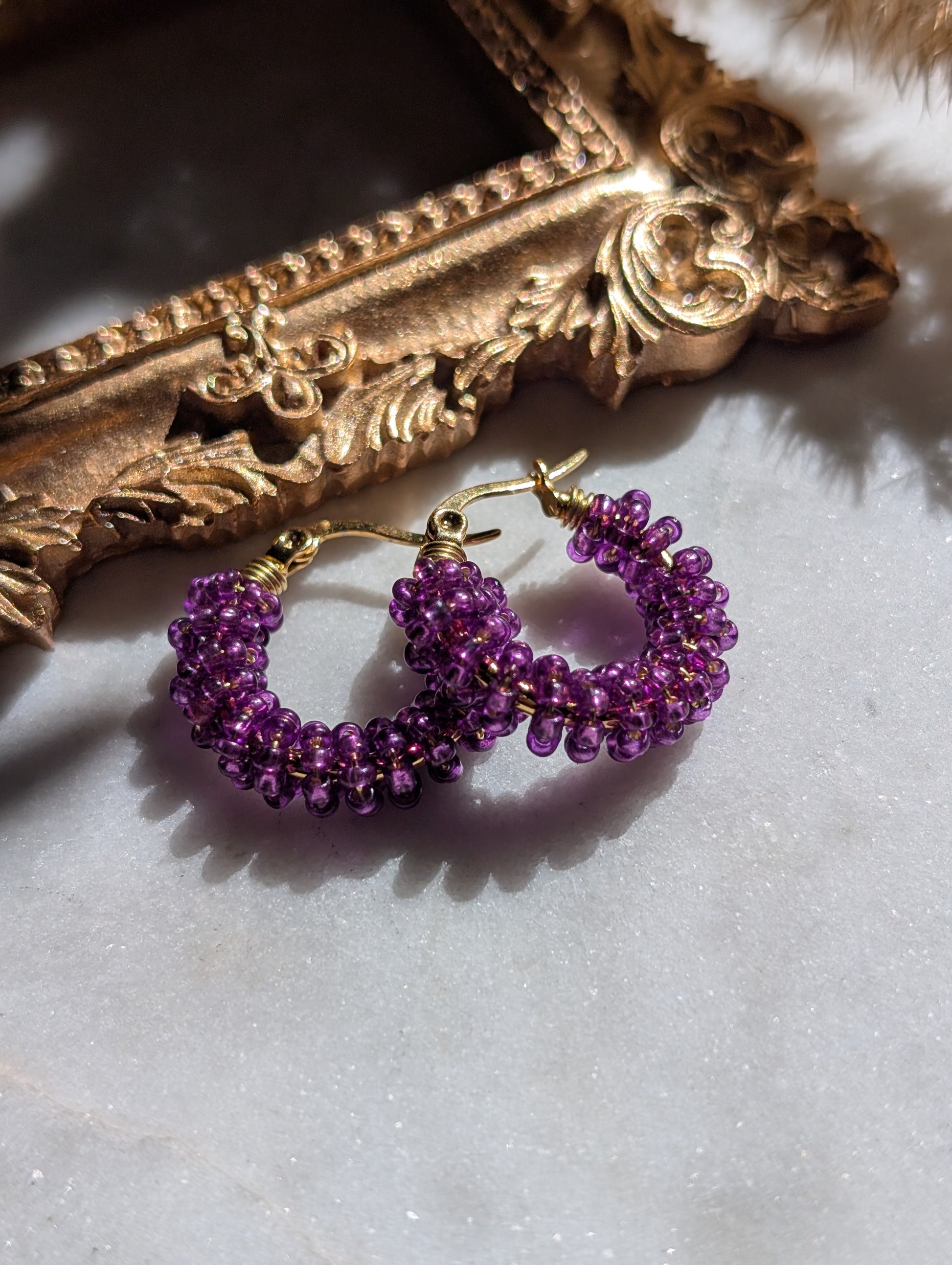 Color Wraps „Figgi“ – Edelstahl-Creolen mit violetten Rocailles-Perlen