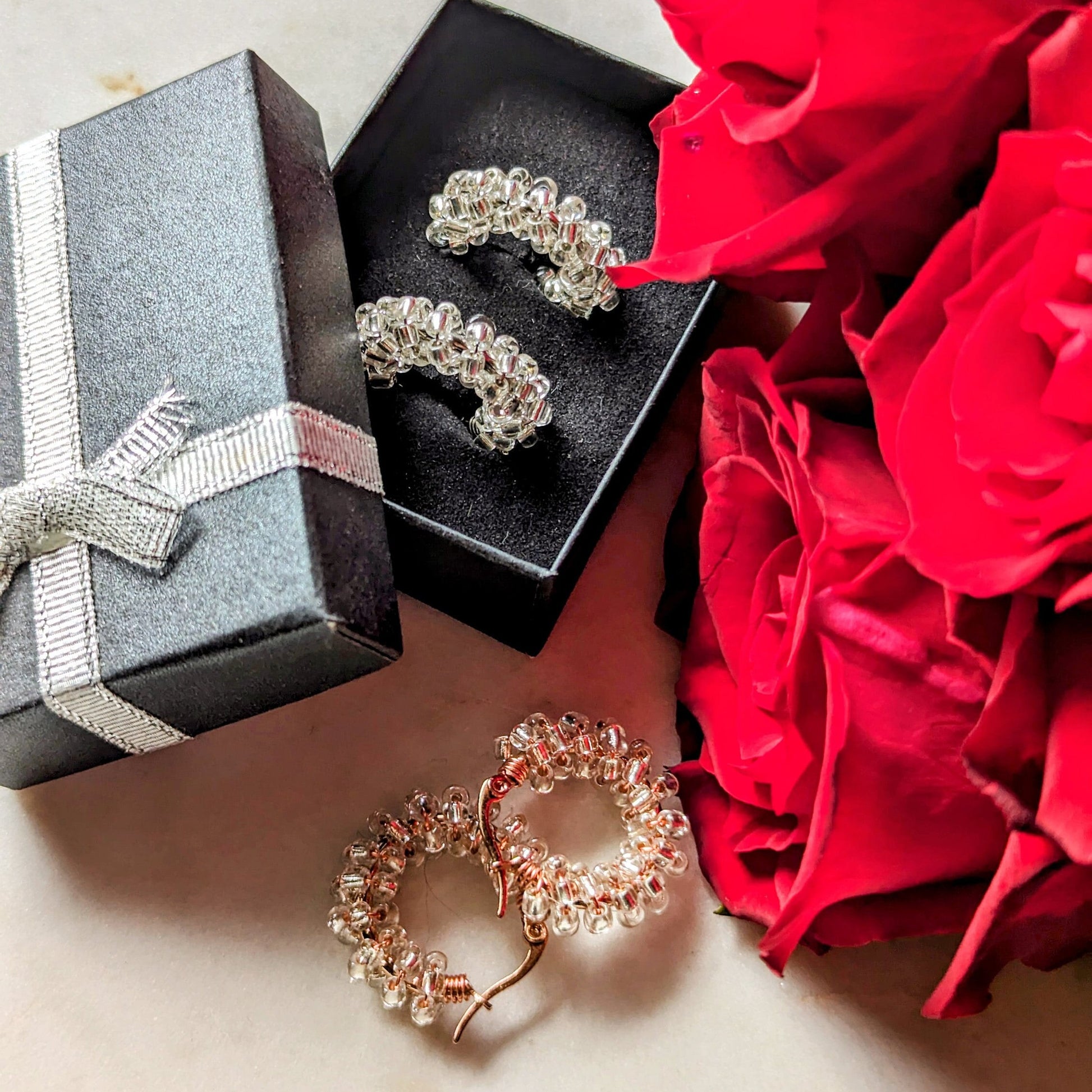 Color Wraps „Glitter Shine“ – Edelstahl Creolen mit transparenten Rocailles
