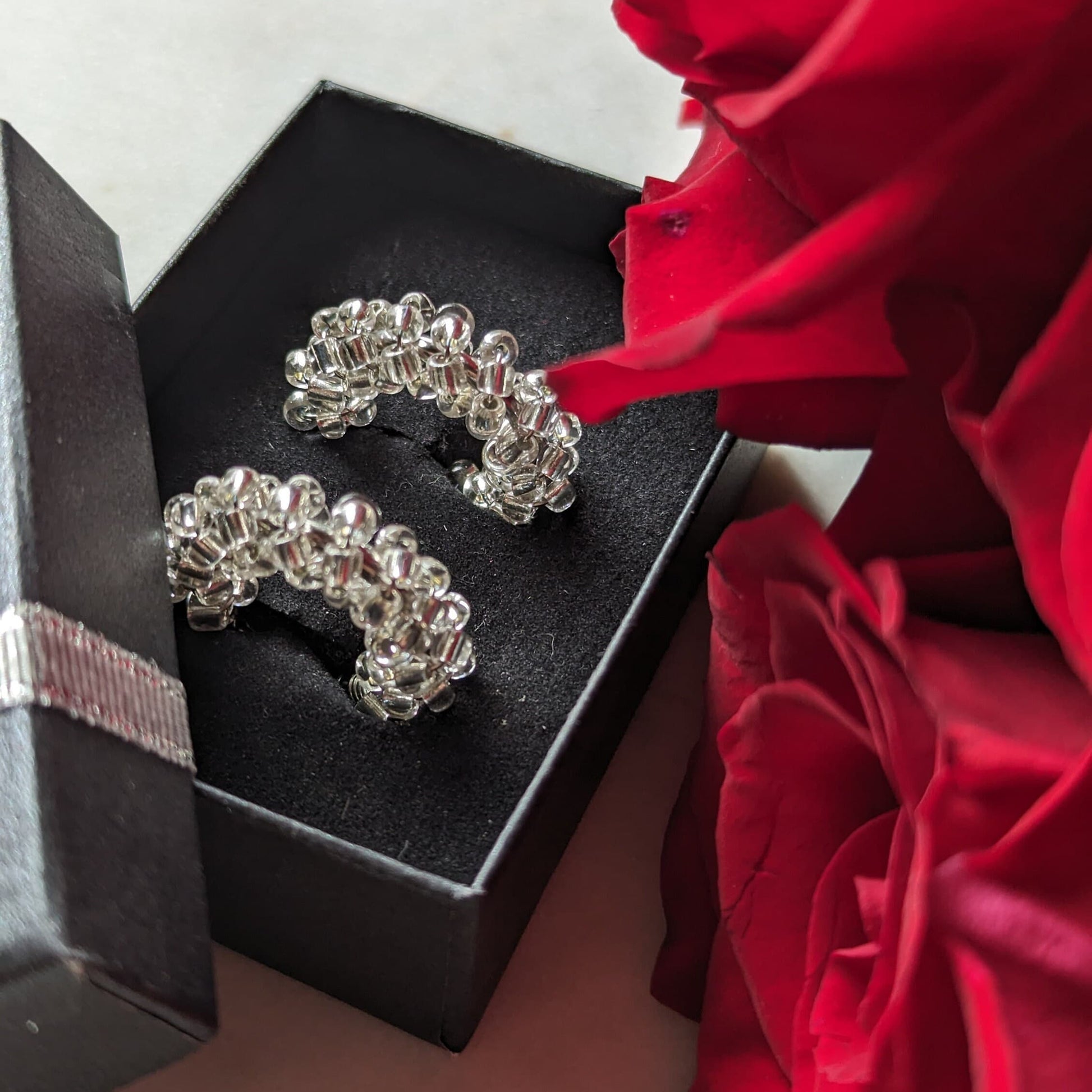 Mit einem Durchmesser von ca. 2,5 cm und den zarten, ca. 3 mm großen Perlen verbinden sie filigrane Handwerkskunst mit langlebiger Alltagstauglichkeit. Der praktische Clicktop-Verschluss sorgt für sicheren Halt, damit das Leuchten auch lange anhält.