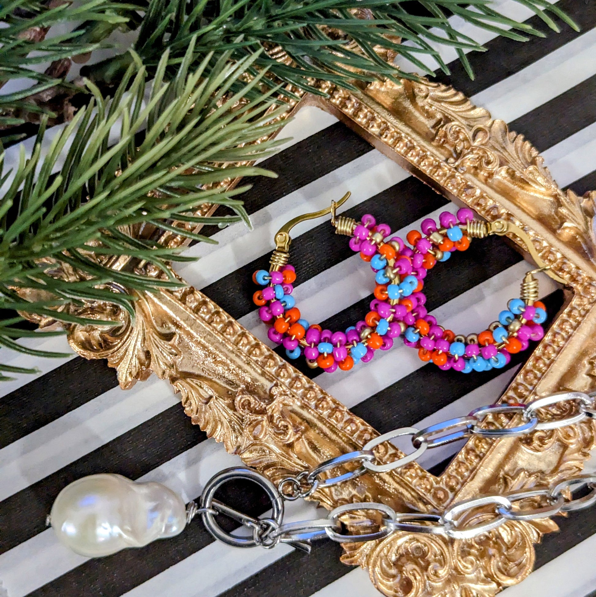 Color Wraps Creolen "Carnival Glow" – Gold & Bunte Rocailles