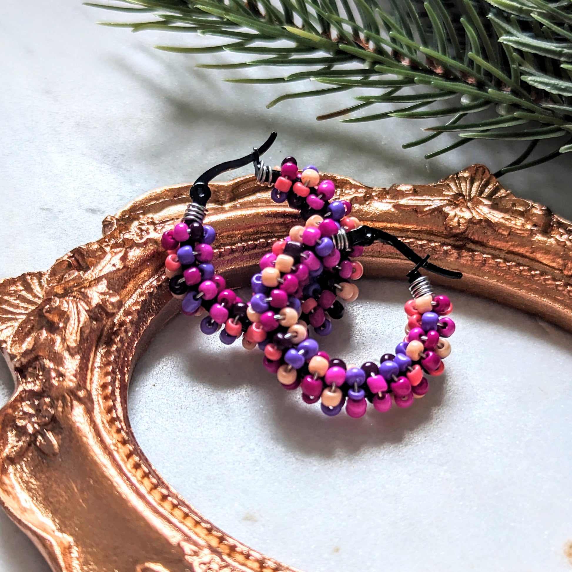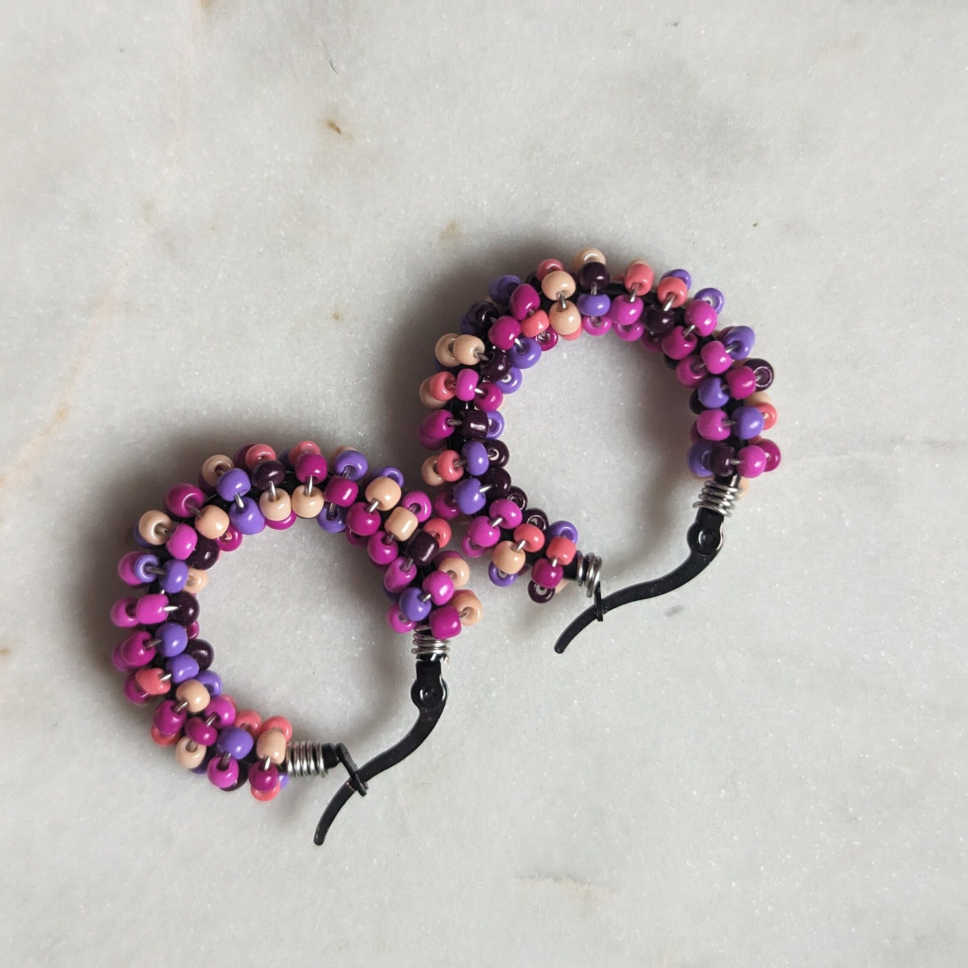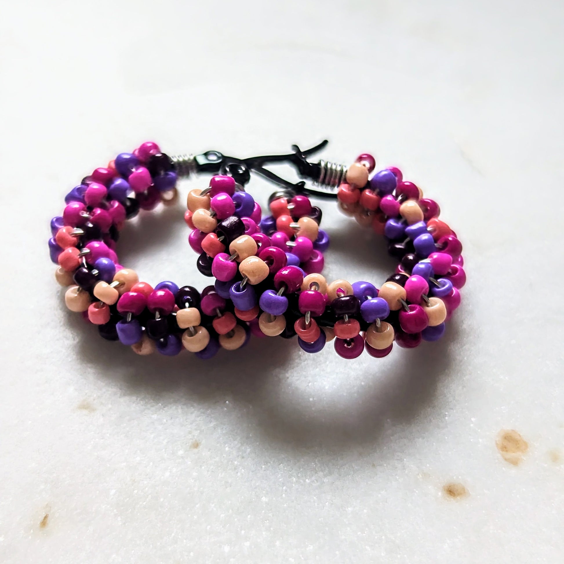 Color Wraps „Pink Pop“ – handgefertigte Edelstahl-Creolen mit bunter Rocaillesmischung
