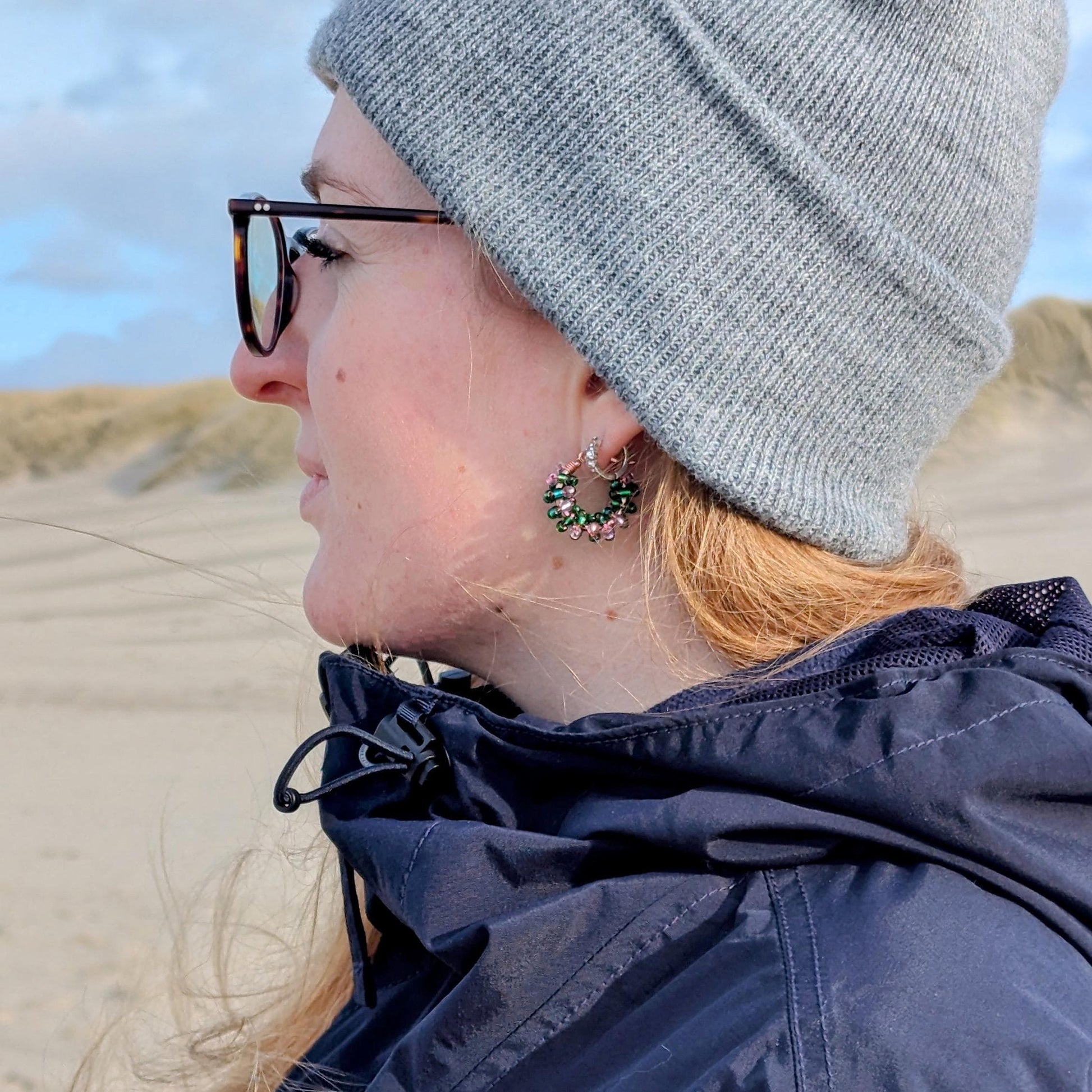 Die Color Wraps „Tulip“ fangen die lebendige Frische eines Frühlingsgartens ein – mit intensiv grünen und zart rosa Rocailles-Glasperlen, die sorgfältig von Hand um die Edelstahl-Creolen gewickelt sind. Der feine silberne Einzug in den Perlen sorgt für ein funkelndes Spiel im Licht, das deine Ohrringe aus jeder Perspektive zum Strahlen bringt.