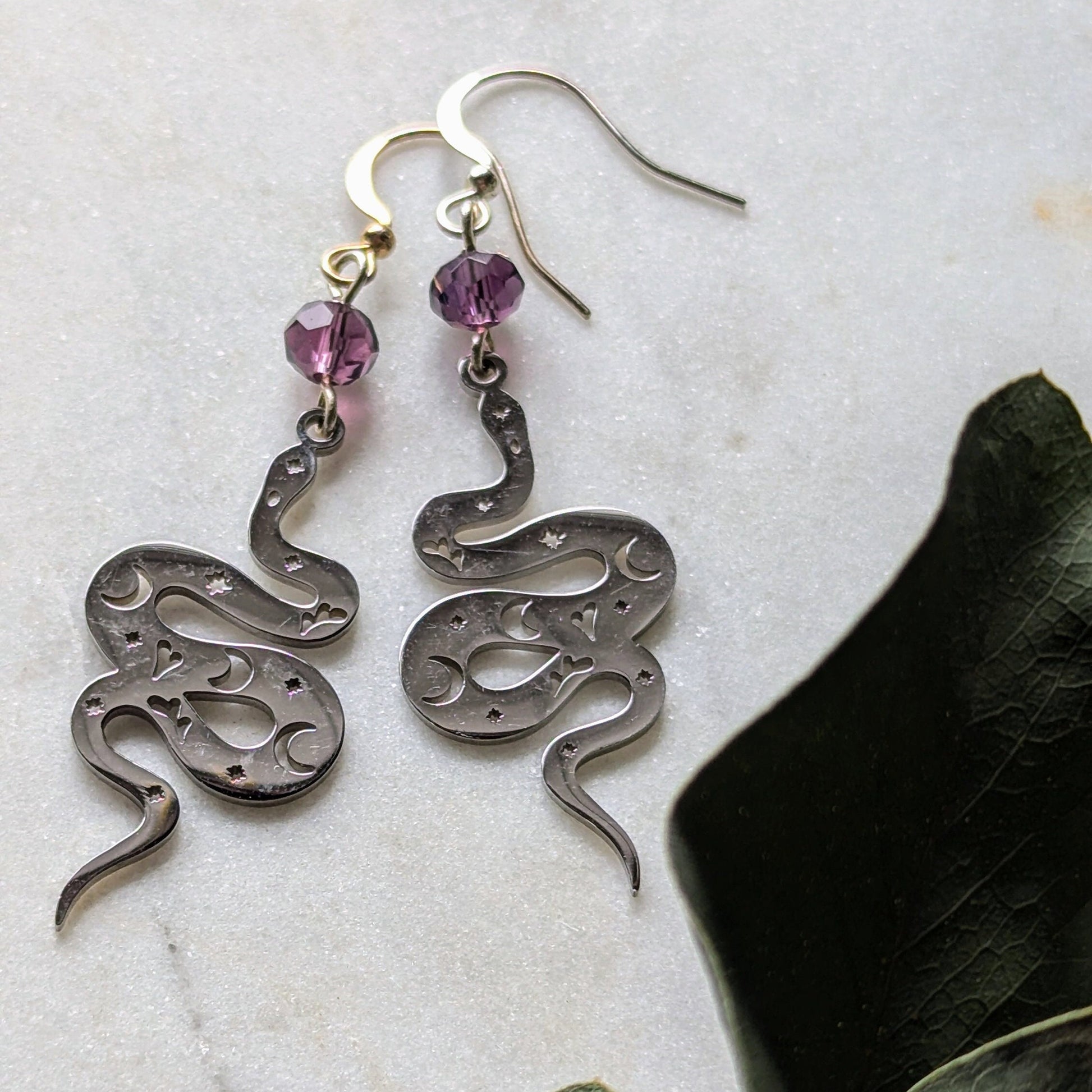 Ohrhänger "Violet Serpent" – Mystische Schlange & Violette Glasperle