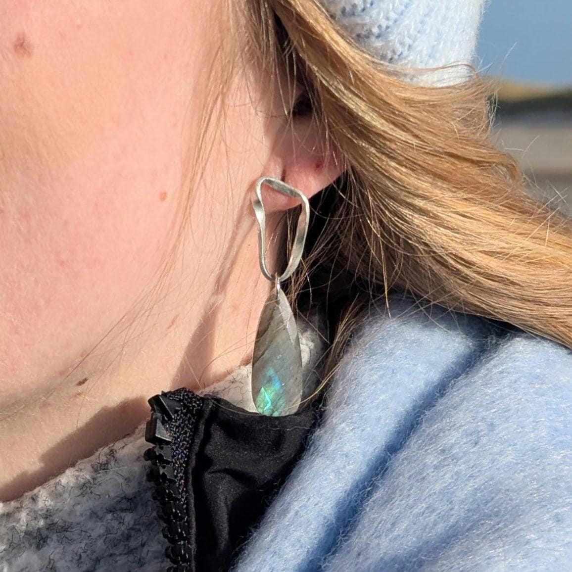 Ohrstecker "Möbius Echo" – Handgeschmiedet Silber & Blauer Labradorit (Einzelstück)