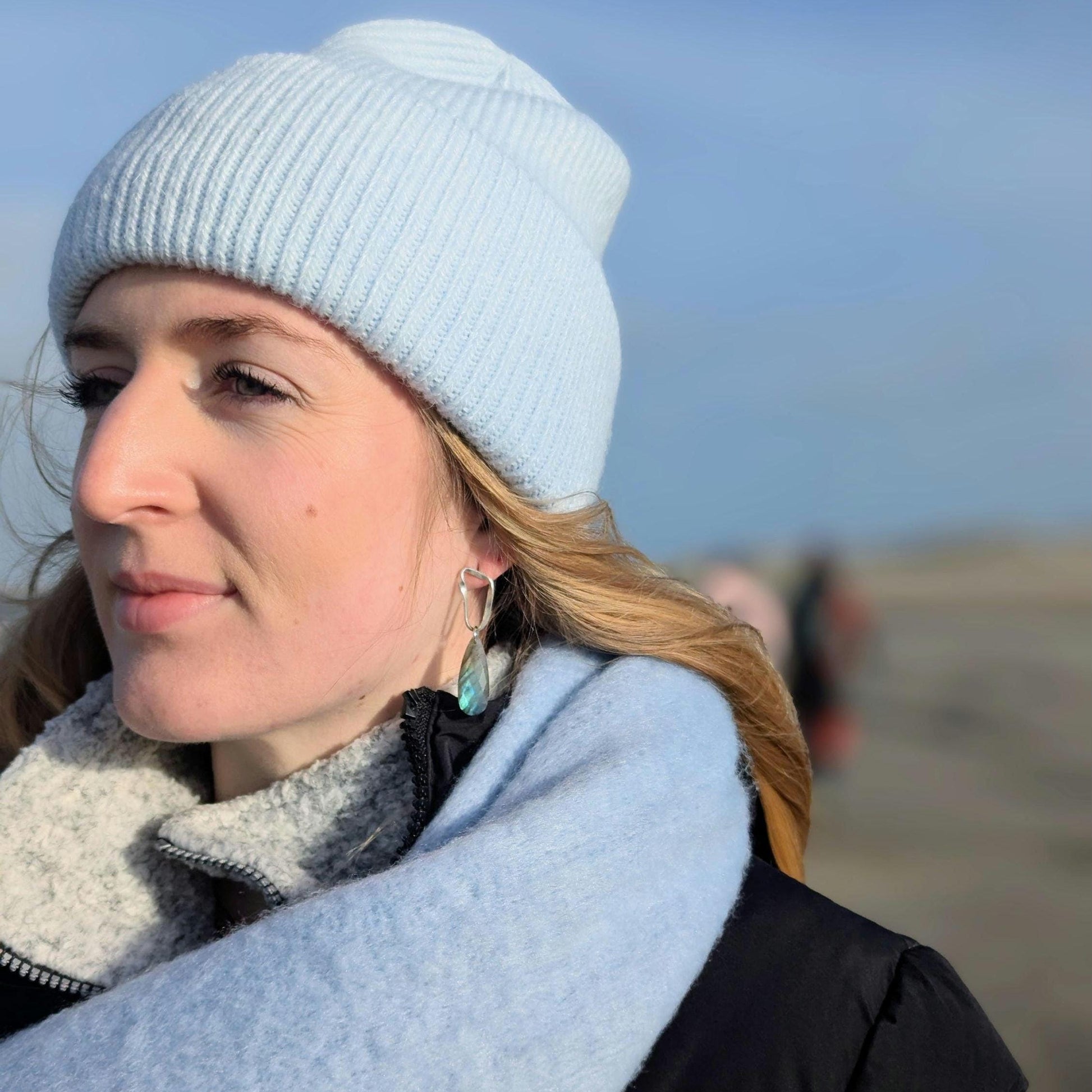 Trag ein Stück Unendlichkeit mit unseren einzigartigen Ohrsteckern "Möbius Echo". Diese faszinierenden Ohrstecker sind ein wahres Einzelstück, von Hand geschmiedet aus gebürstetem 925er Silber in Form einer fließenden Möbiusschleife – dem Symbol der Unendlichkeit. Jeder Ohrstecker wird von einer zartblauen Labradorit-Briolette gekrönt, deren geheimnisvoller Schimmer bei jeder Bewegung das Licht einfängt.