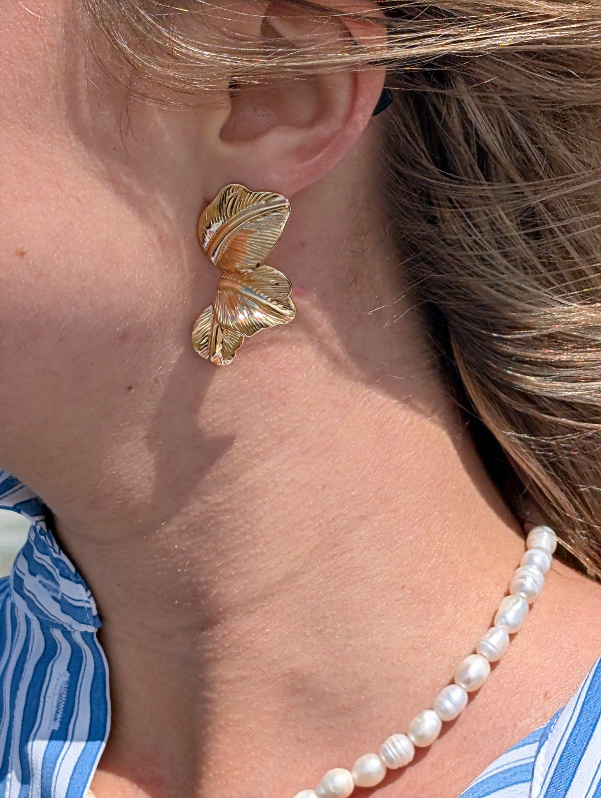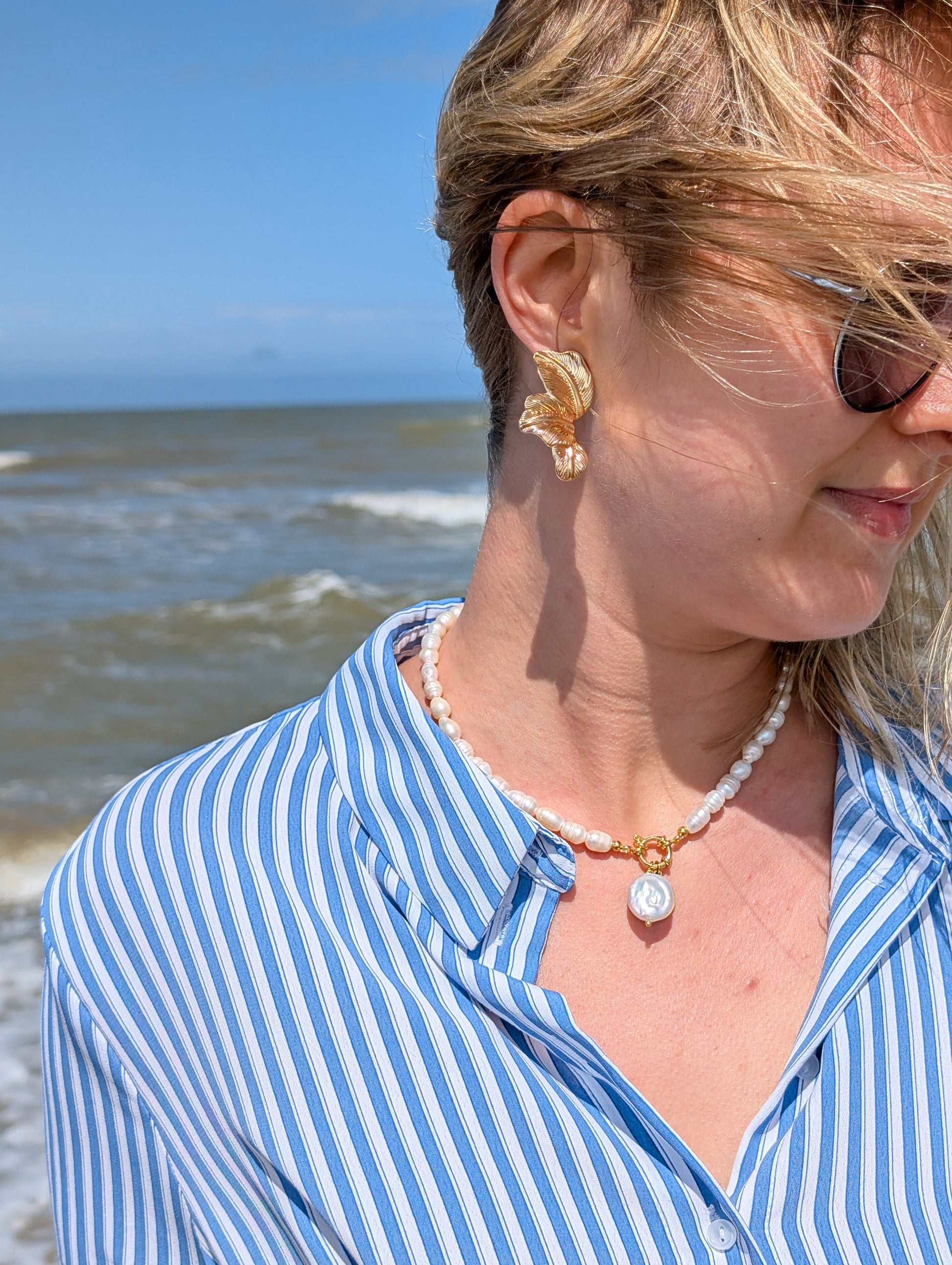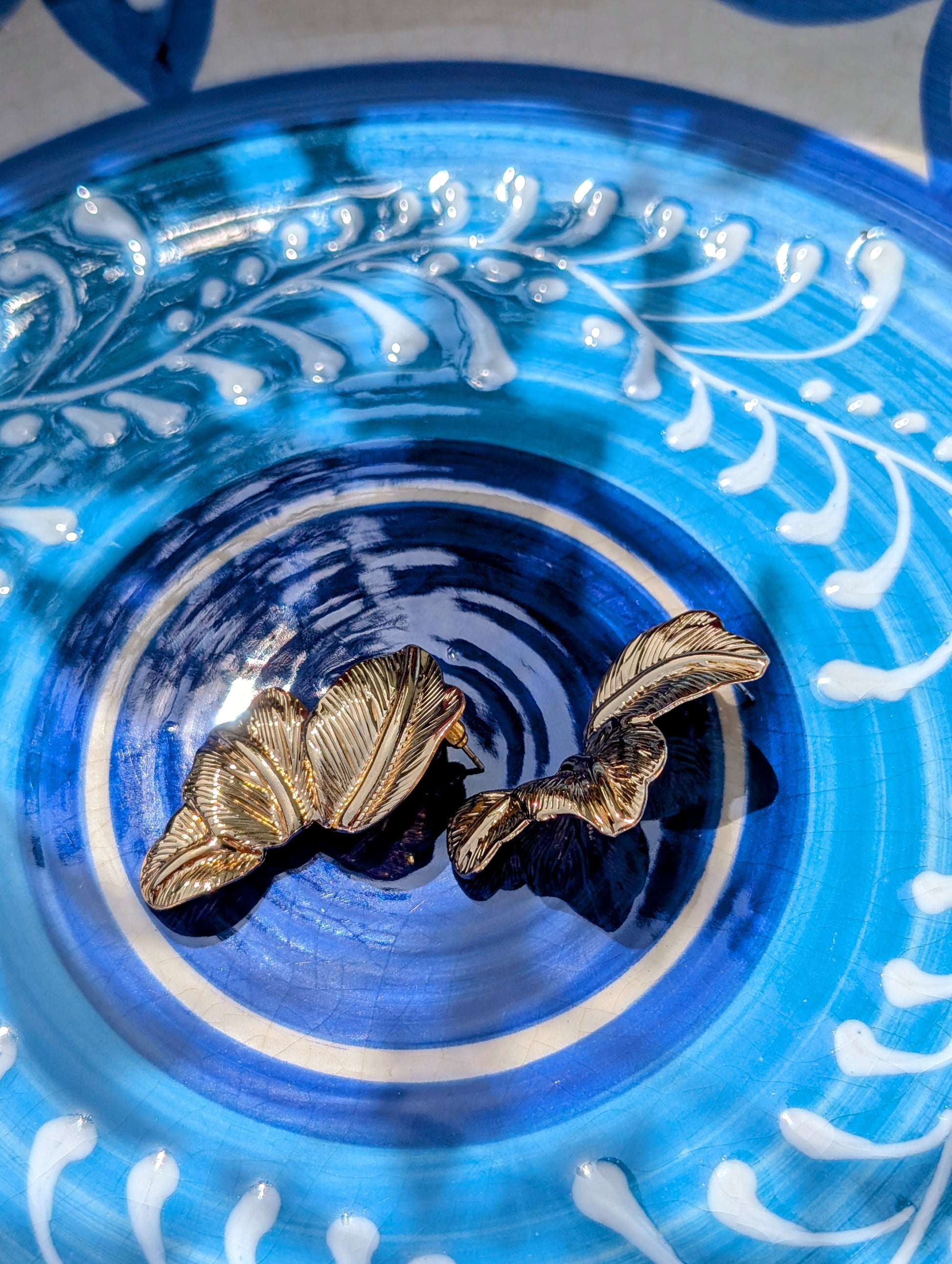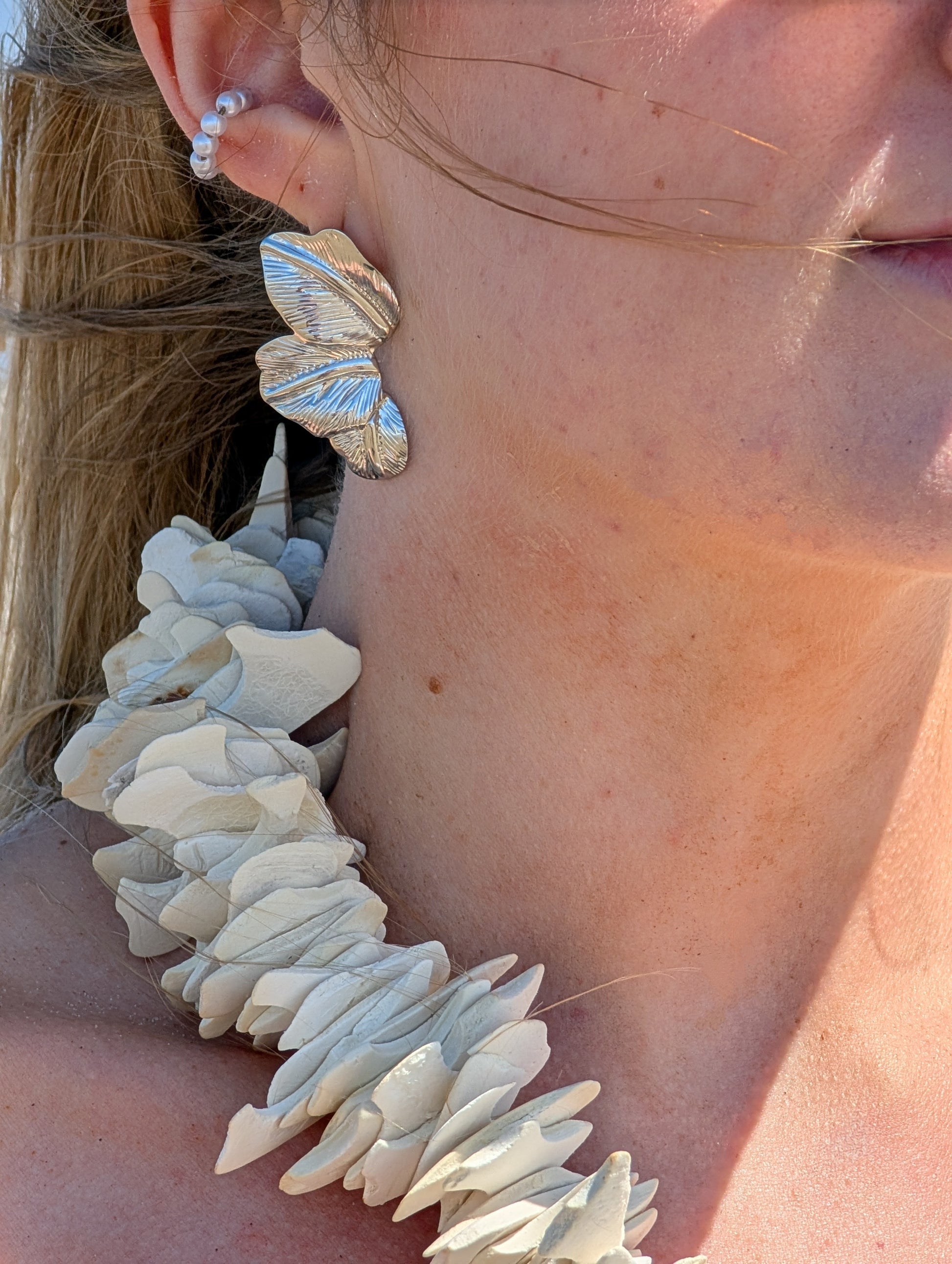 Die organische, doppellagige Blattform schmiegt sich elegant an dein Ohr und spielt bei jeder Bewegung mit dem Licht. In der goldenen Variante erinnert der warme Farbton an die magischen Stunden vor Sonnenuntergang über den Reisterrassen von Ubud. In der silbernen Ausführung fängt der kühle Glanz das sanfte Glitzern des Mondlichts auf dem Ozean ein.